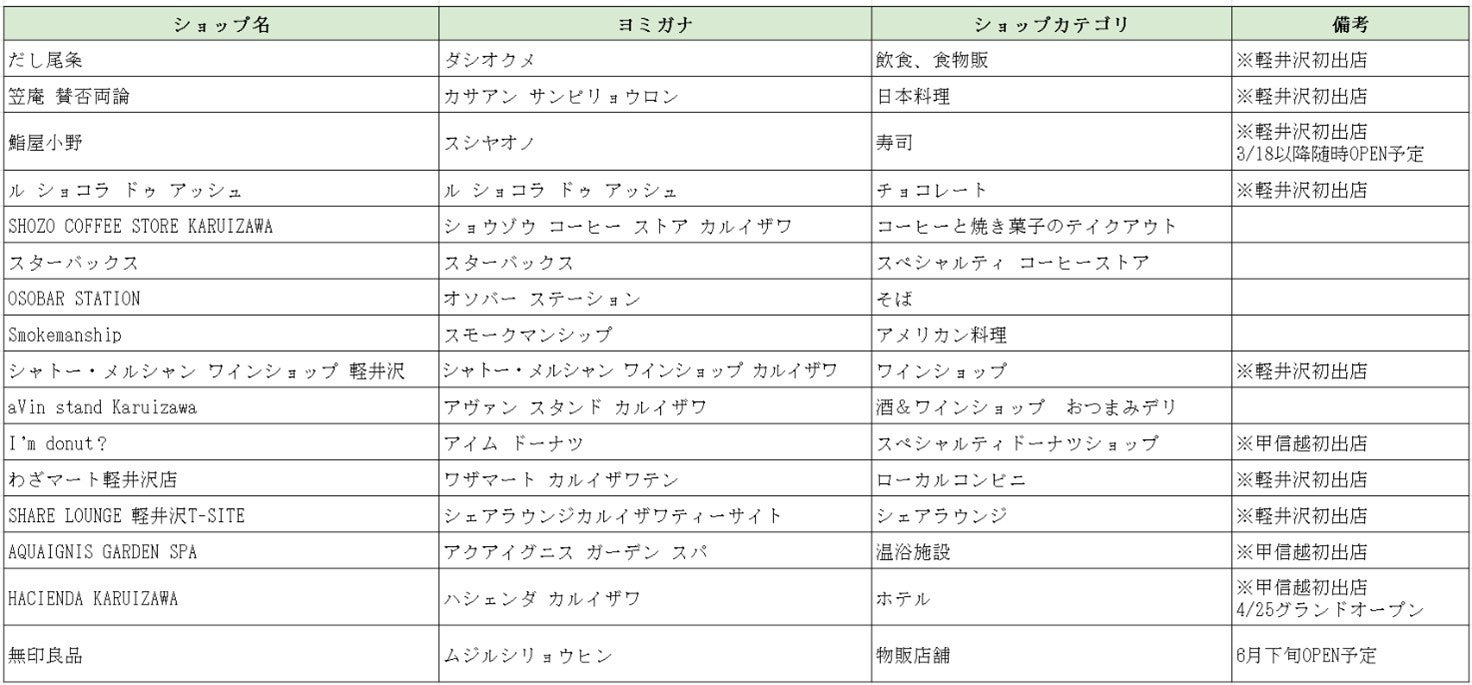 アクセス :JR北陸新幹線・しなの鉄道「軽井沢」駅 徒歩1分