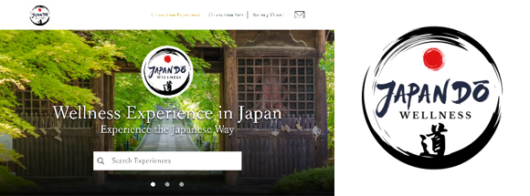 左:『JAPAN道ウェルネス』公式予約サイト 右:『JAPAN道ウェルネス』ロゴ:日本を「道」で繋いで輪(和)を作るイメージ