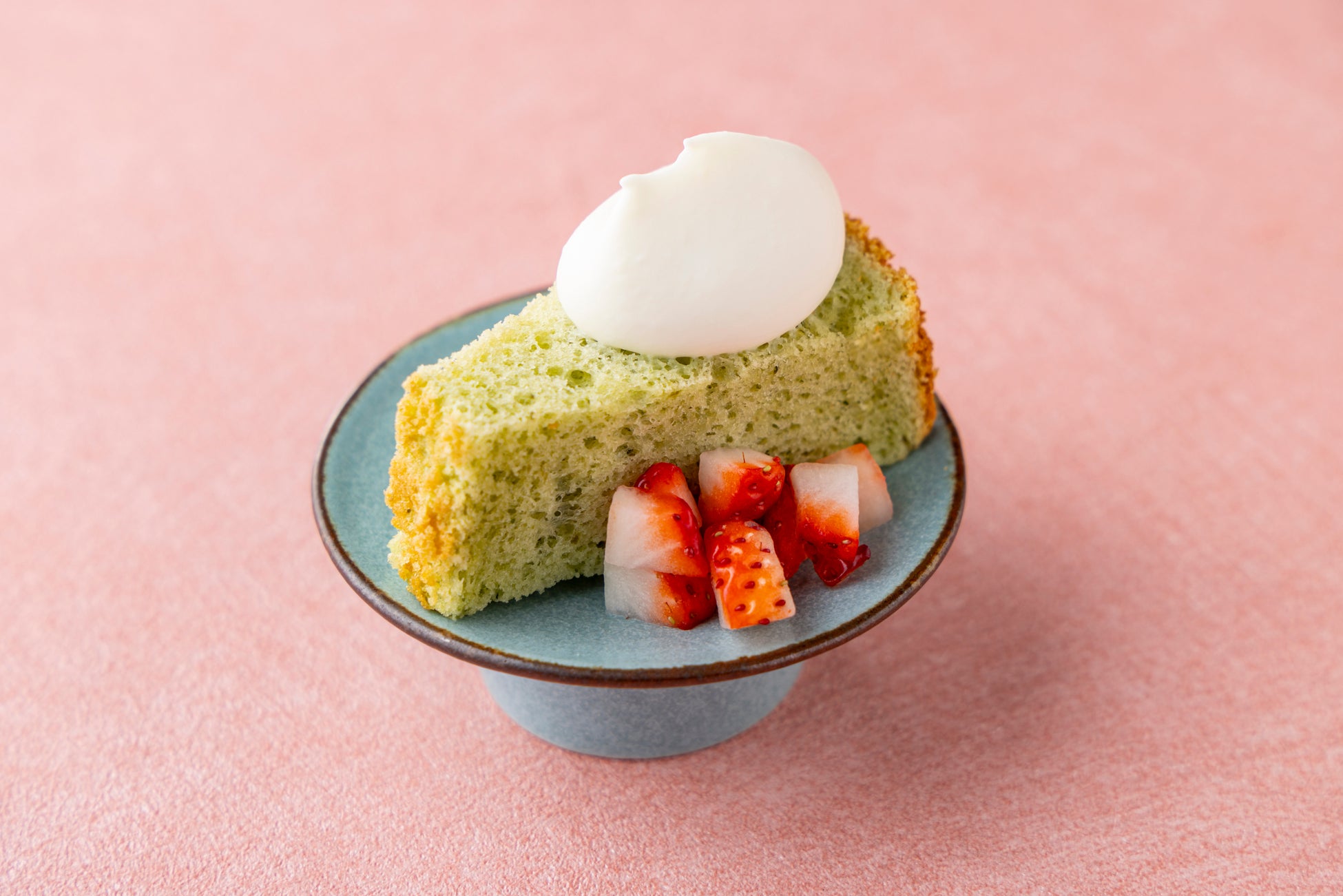 フレッシュバジル香る自家製ソースを練り込んだ、ふんわり軽やかなシフォンケーキ。