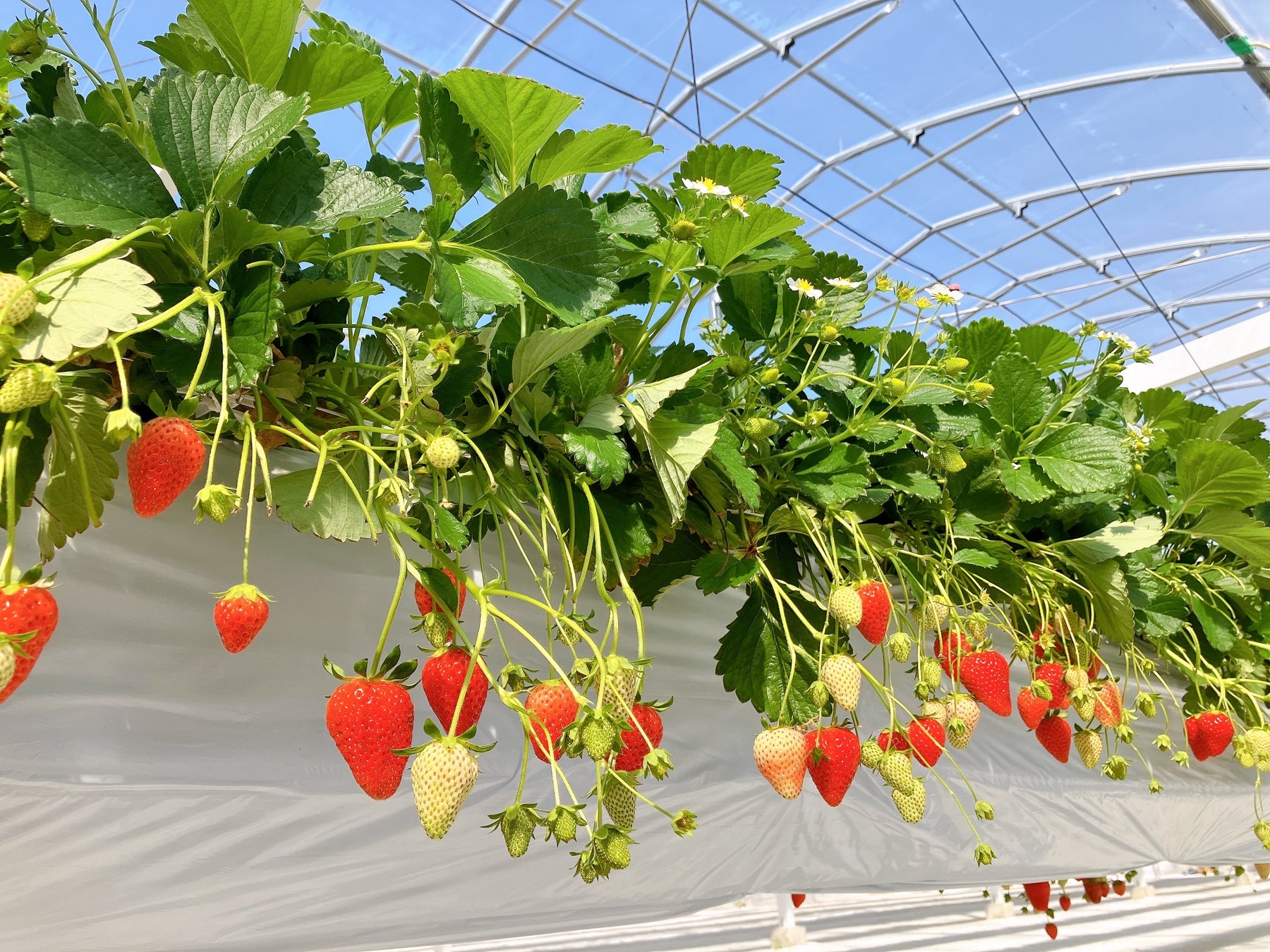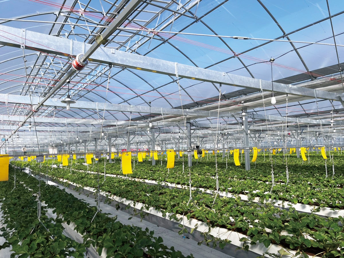 スマート農業を駆使した最先端のビニールハウスでのいちご狩り。