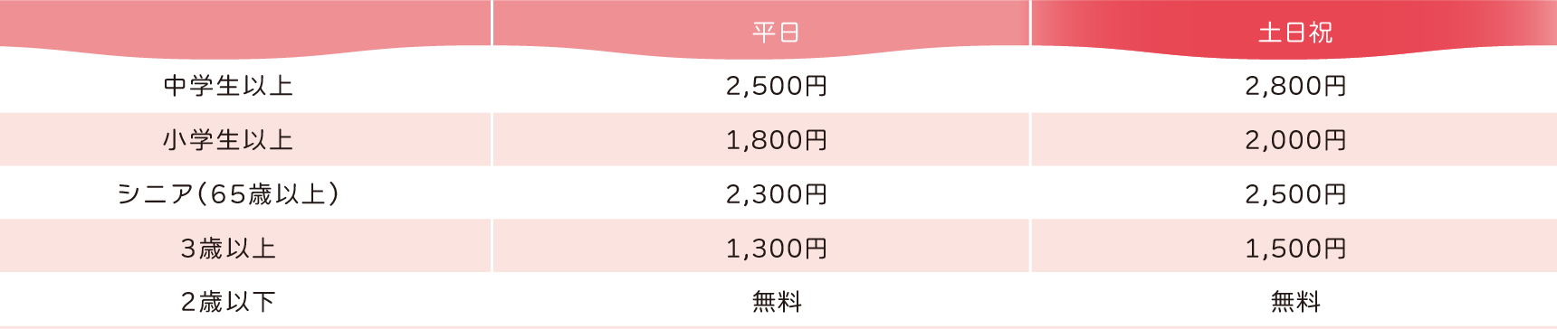 ●いちご狩り体験 料金表