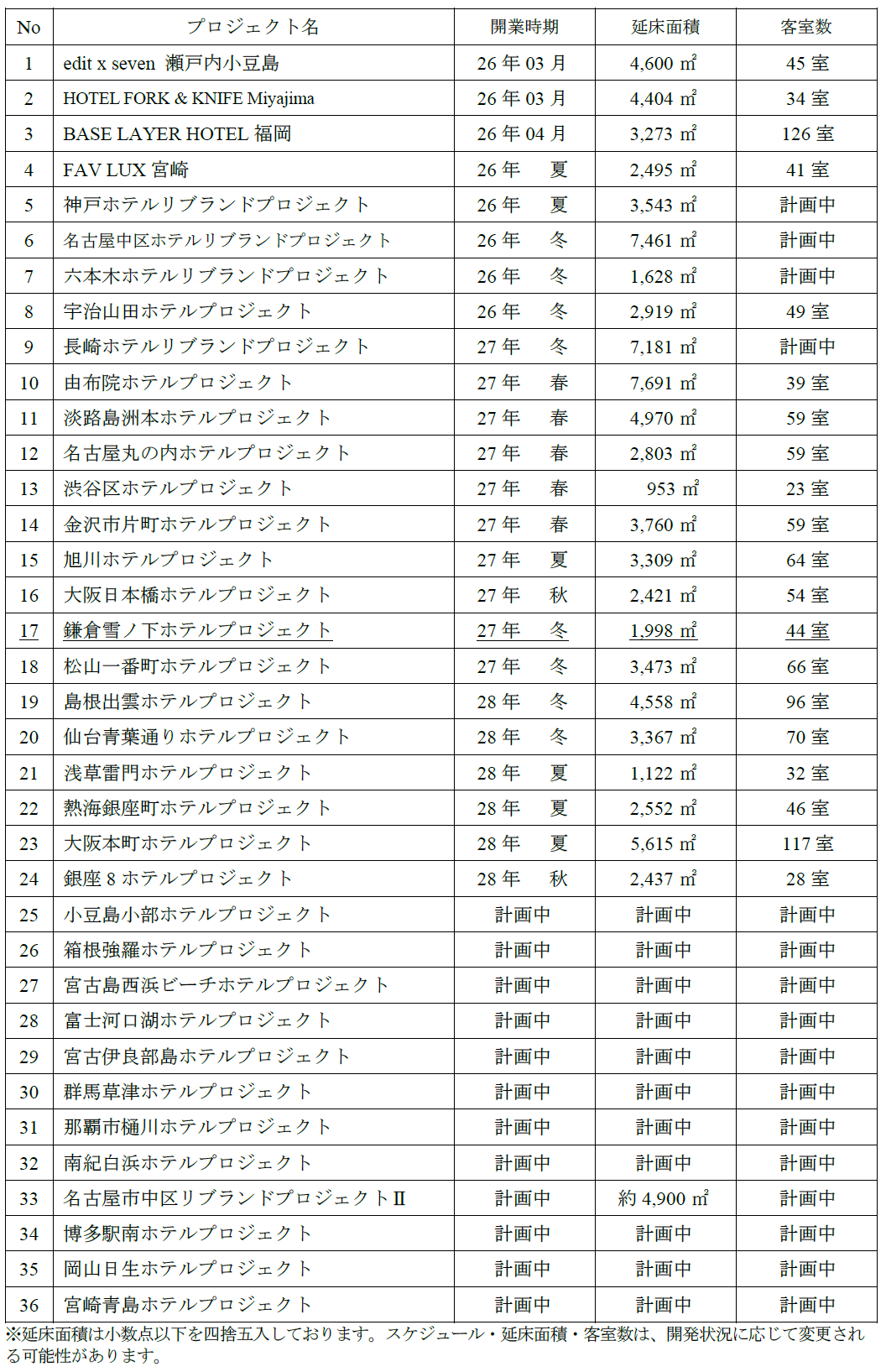 ■ホテル開発予定案件一覧