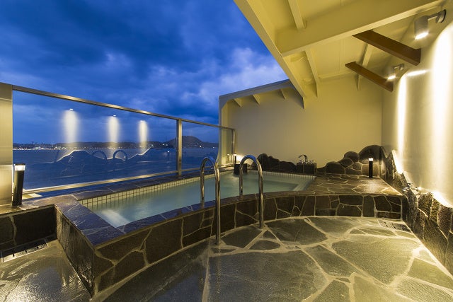 瀬戸内海の夜景や星々を見ながらの露天風呂や地方銘柄の刺身など、快適な船旅を演出する充実したパブリックスペースも魅力の一つ