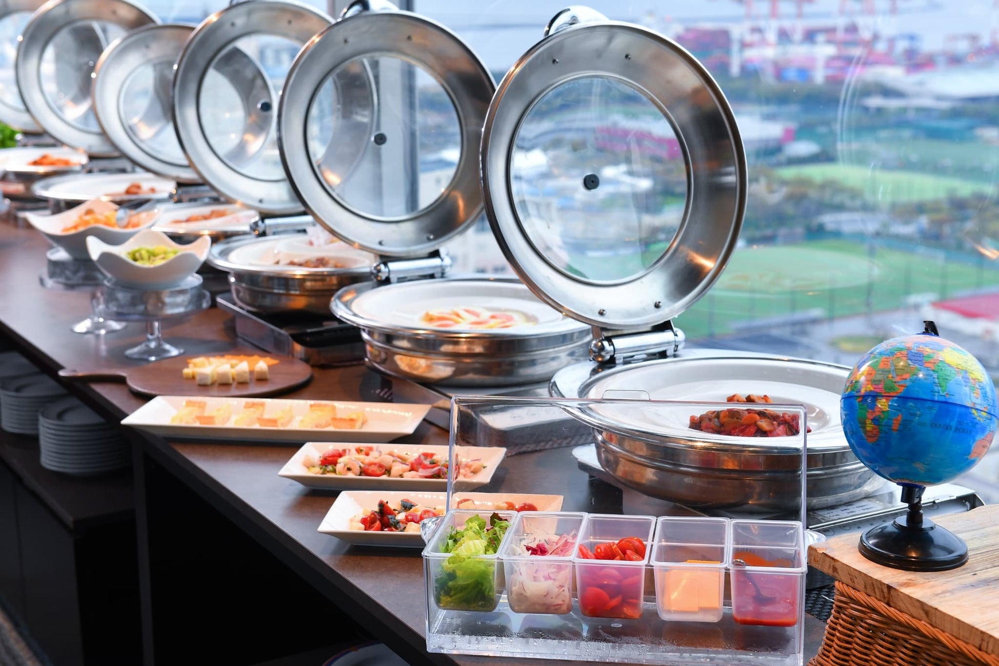 ホテル最上階のレストランで六甲沖の海を眺めながら兵庫県の地産地消メニューを堪能