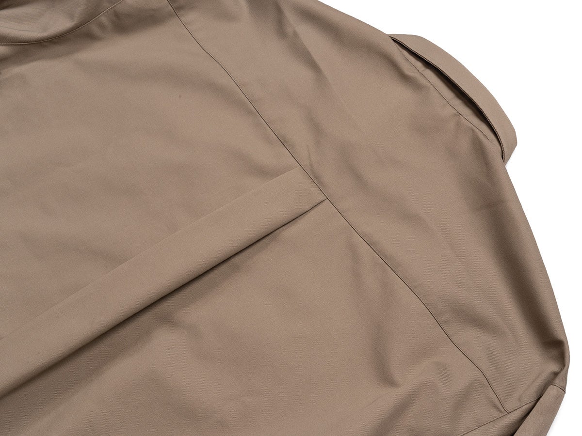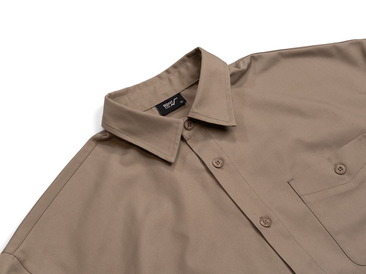 やや広めに設計したヨークやセンターボックスプリーツにより、堅さを感じさせず、動きやすく立体的なシルエットに。ボタンにのみロゴを配したミニマルなデザインと、さりげない補強ディテールもポイントです。