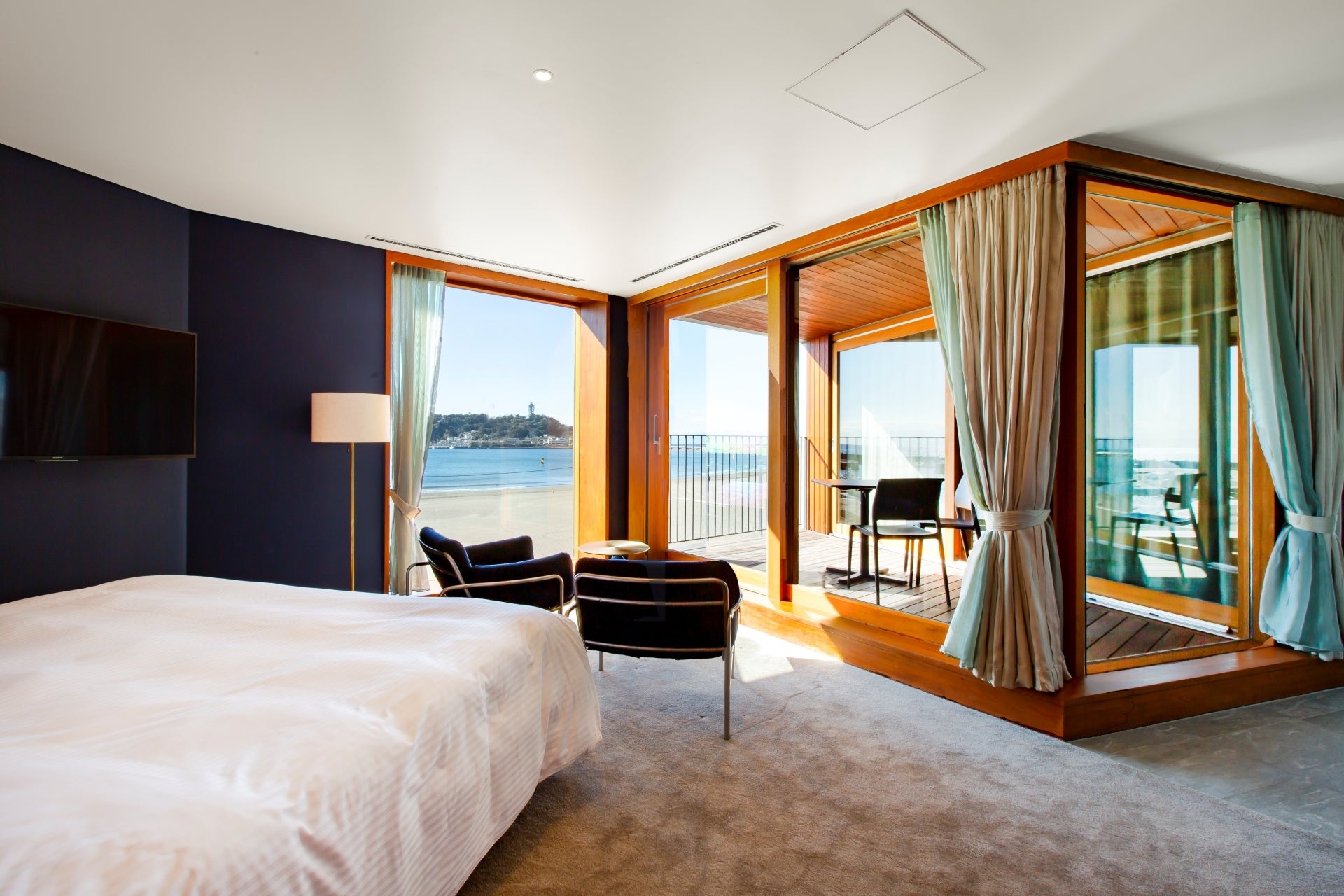 「鎌倉 松原庵」の料理と酒を心ゆくまで楽しみ、海と空の青の移ろいを眺めながらお寛ぎいただけるホテルをコンセプトにした「HOTEL AO KAMAKURA」。