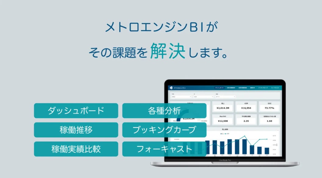 今回の出展では、レベニューマネジメントシステム「メトロエンジン」を中心に、経営状況の可視化で意思決定をサポートする「メトロエンジンBI」、そして突発的な需要を捉え機会損失を防ぐ新サービス「メトロトレイル」を含む、AI・データ分析に強みを持つ各種ソリューションをご紹介します。