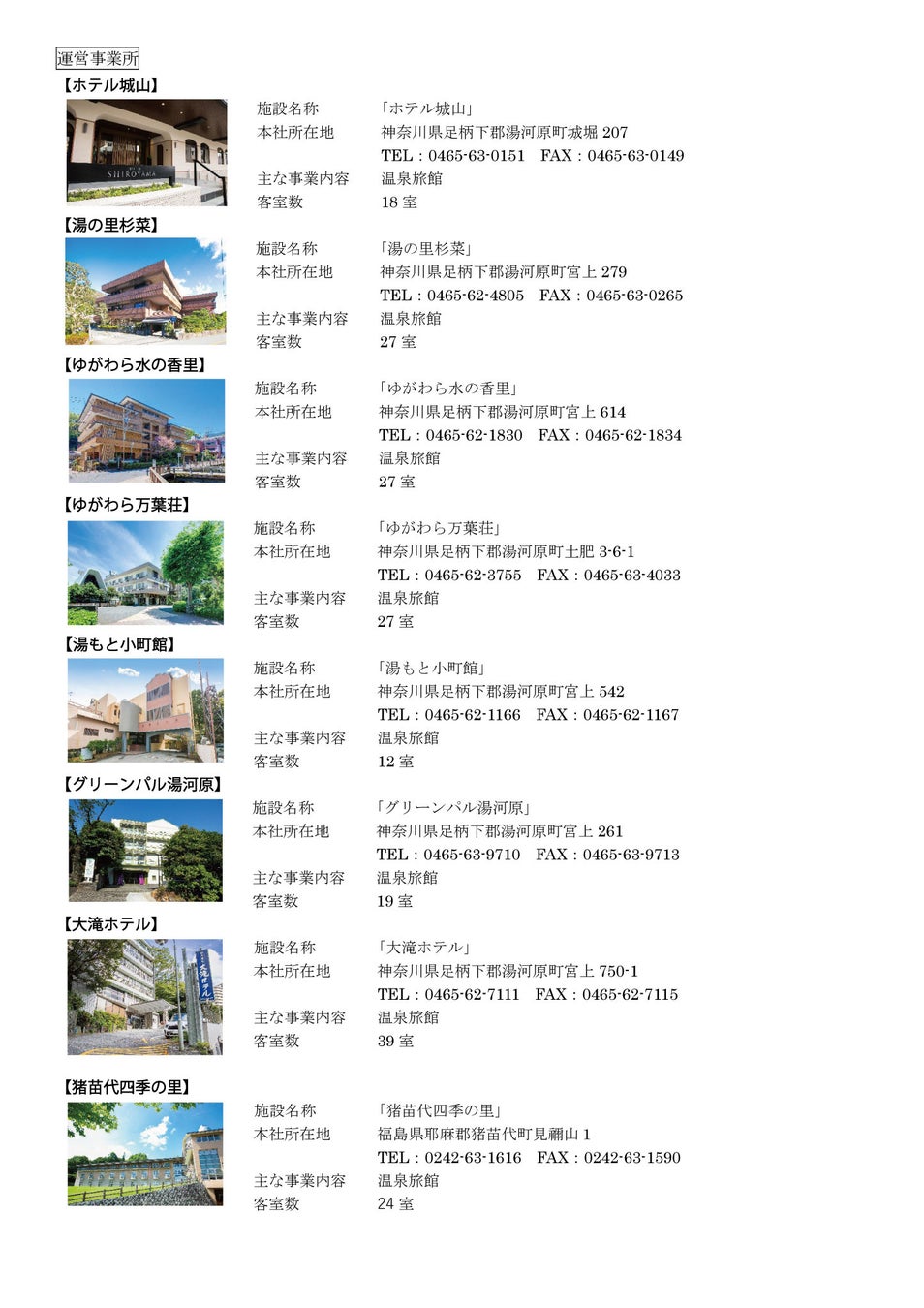 主な事業内容 旅館経営・宿泊施設運営業務委託・レストラン・バス事業・旅行業・旅館経営コンサルティング