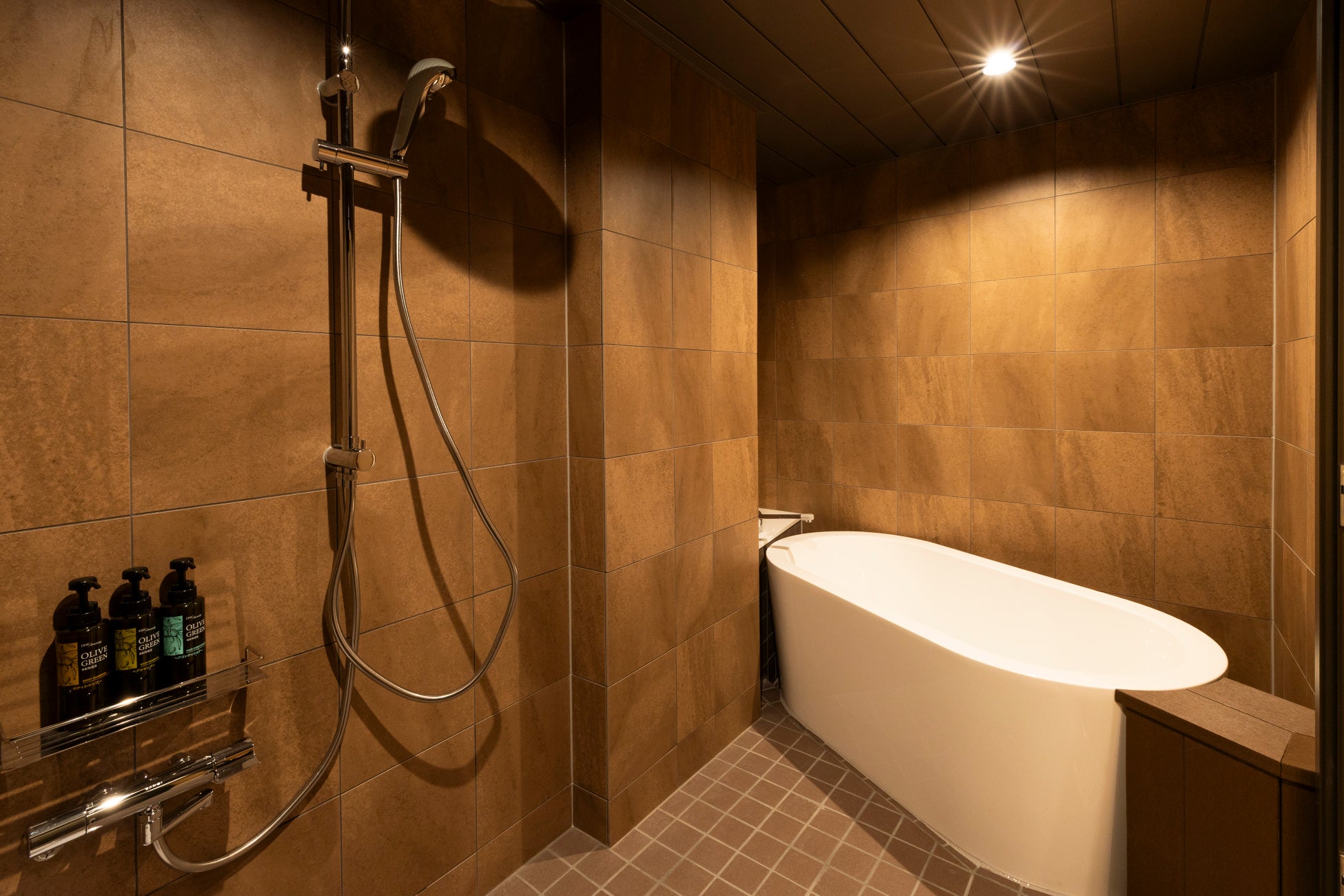 都会の喧騒から一歩離れた先に広がる、旅ならではの心地よい静けさに満ちたくつろぎ空間。柔らかな間接照明が部屋全体を包み込み、ブラウンやベージュを基調とした色合いが安心感と温もりを与えます。ここは、非日常的でありながら気取らない、静かに自分を取り戻せるお部屋です。女性に嬉しいアメニティのひとつとして、シャワーヘッドやヘアドライヤー、ヘアアイロンには、美を追求する「ReFa」を採用。