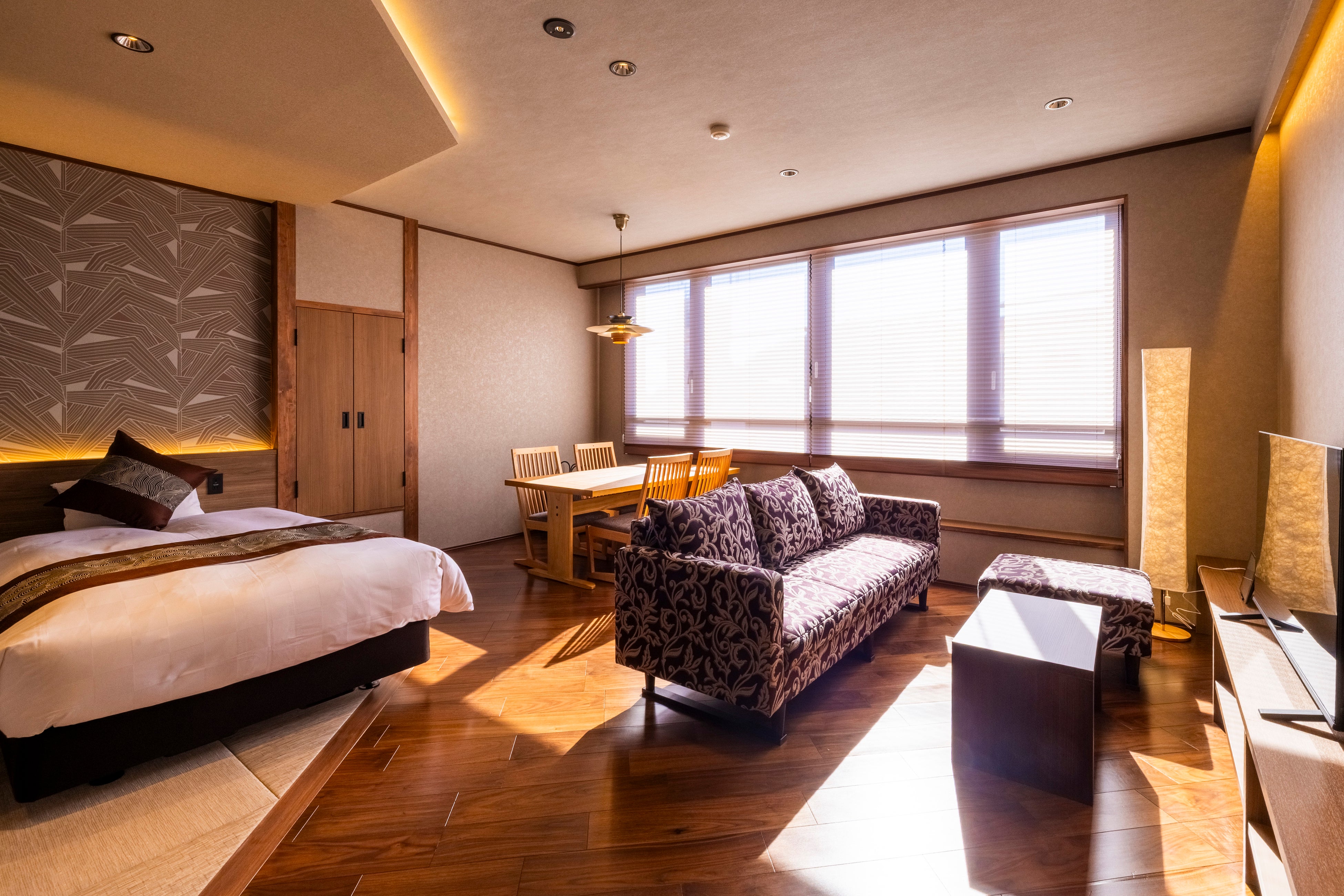 ベッドサイドには、旅の必需品であるUSBポートやTYPE-Cソケットが標準装備されており、機能性と美しさを兼ね備えたインテリアが、滞在そのものを豊かな時間へと昇華させます。旅の疲れを癒すだけでなく、何もしない贅沢を味わうための一室でもあります。ここから始まる、心をほどける滞在をぜひお楽しみください。