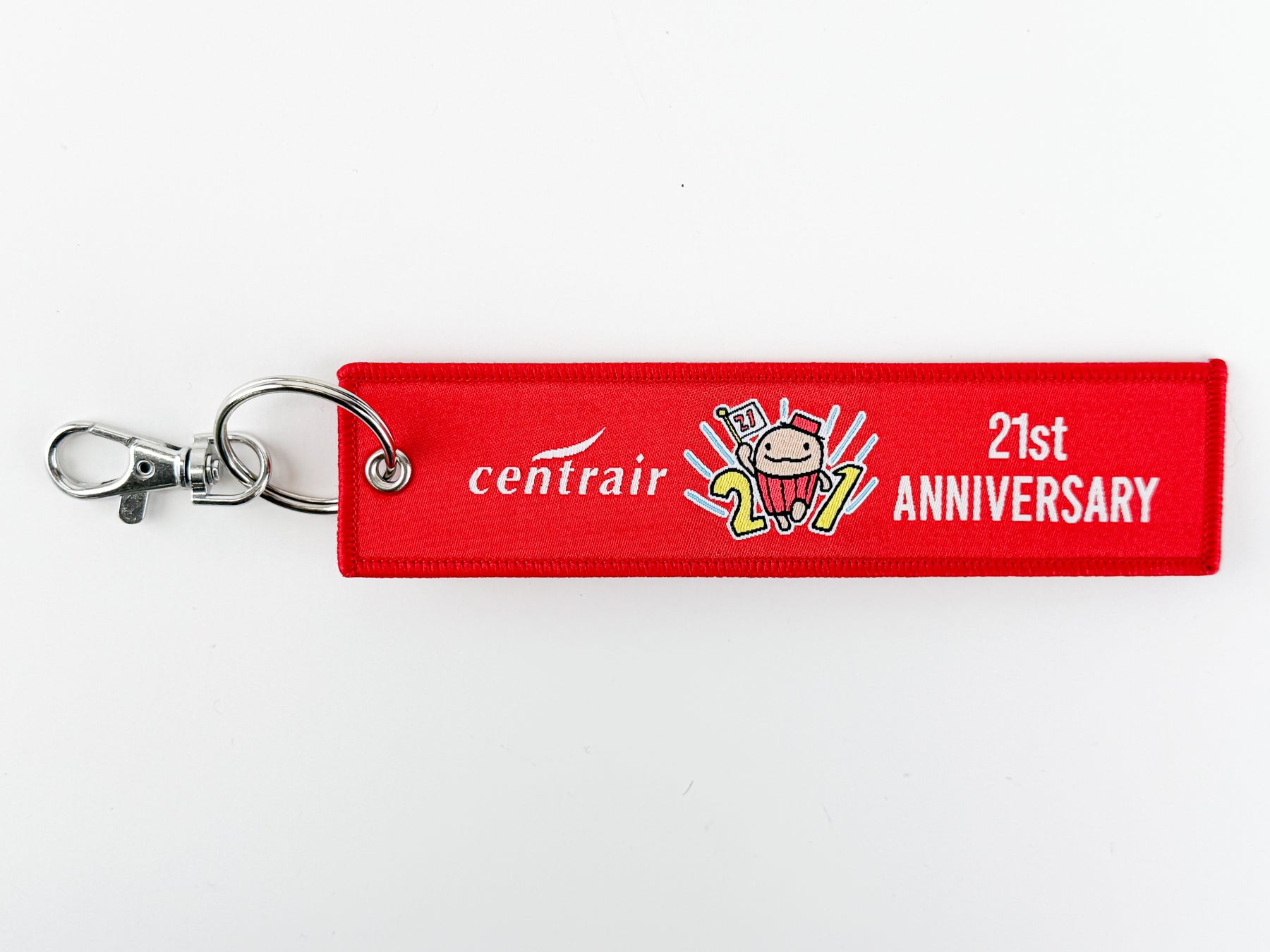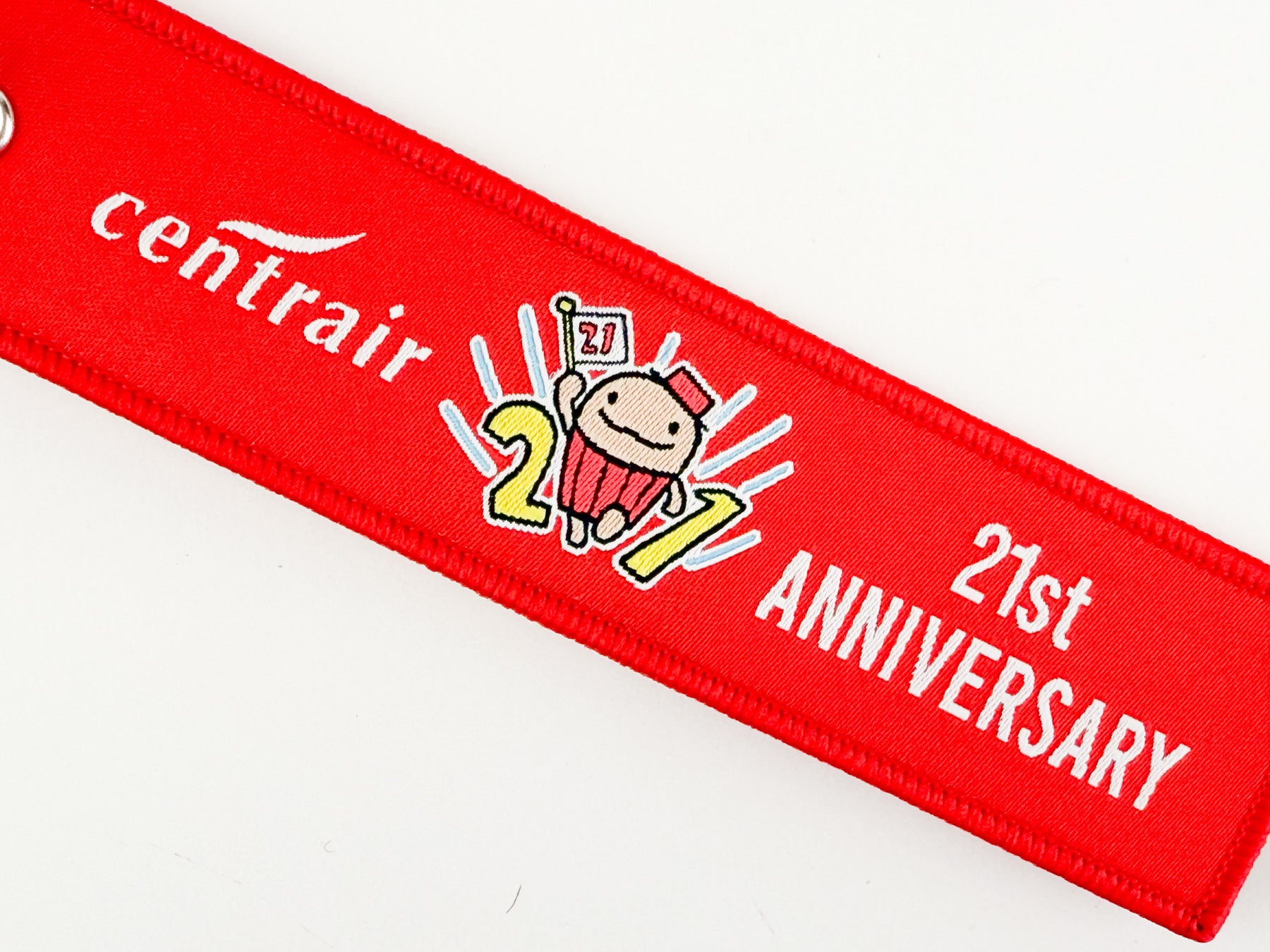 21周年ロゴとセントレアロゴをあしらった特別仕様で、キャリーケースやリュックに付ければ旅のアクセントとしてお楽しみいただけます。