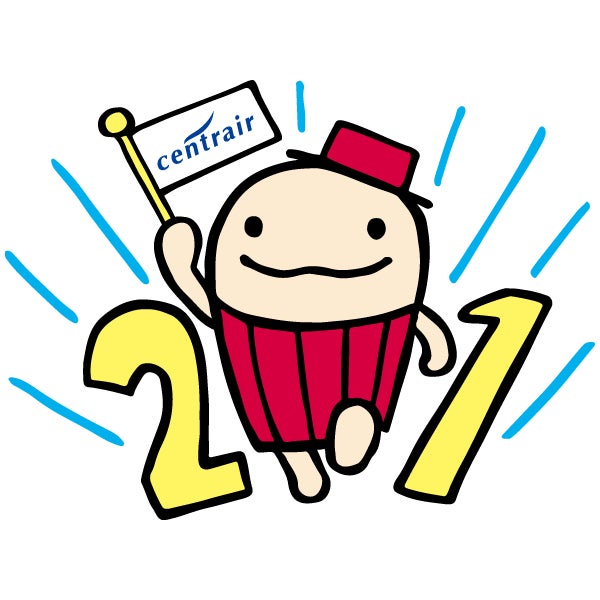 今回使用している21周年ロゴは、セントレアのオリジナルキャラクター「なぞの旅人フー」が、20周年の節目を経て、21年目へと明るく前に歩みだす姿をイメージしてデザインされたものです。