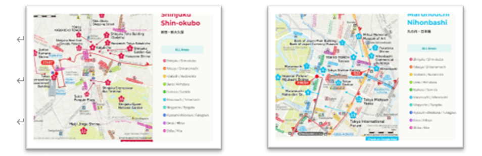本マップでは、スタート地点の東京都庁からゴール地点の東京駅周辺まで、マラソンコース沿いの観光スポット100か所以上を掲載。