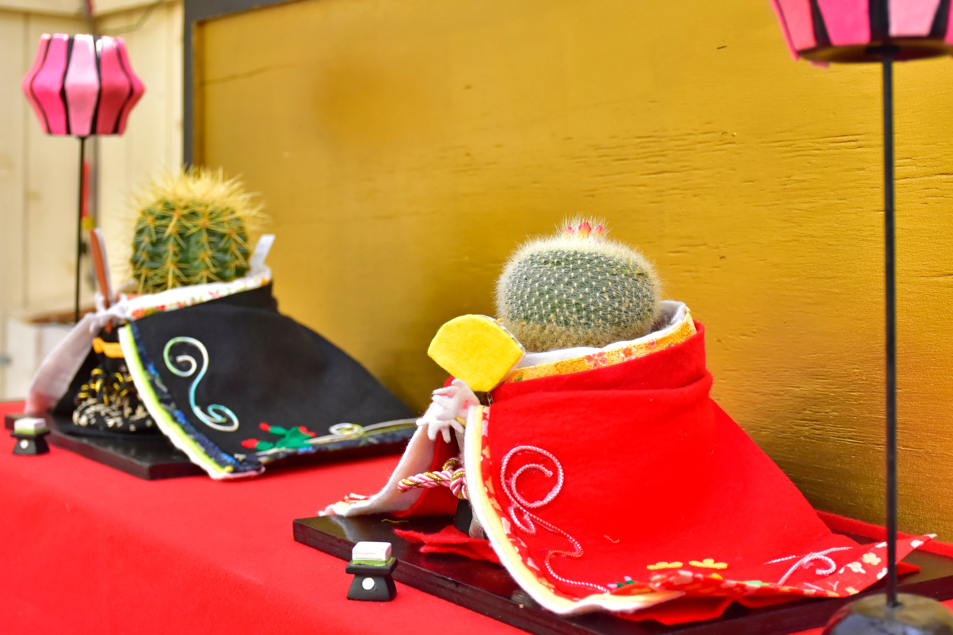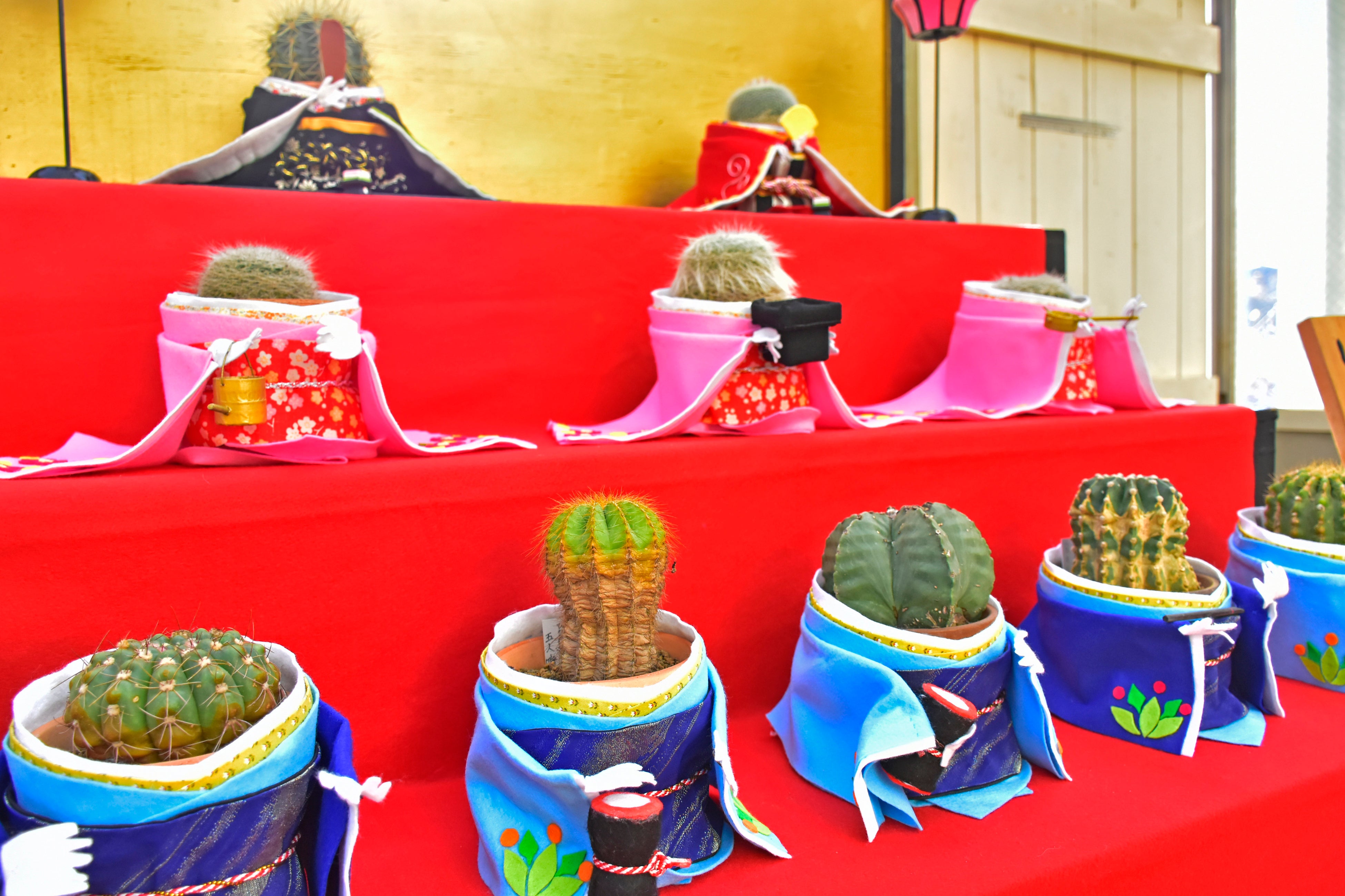 世にも珍しい、サボテンおひなさまの三段飾り