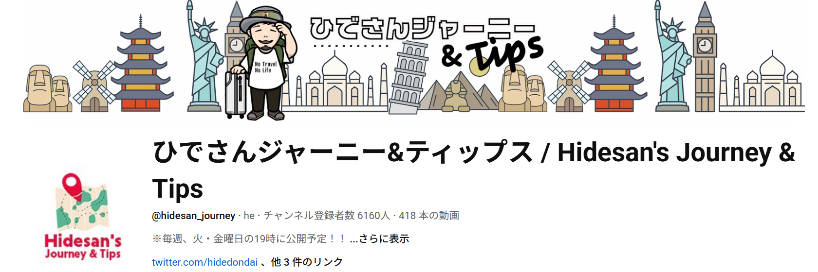 YouTubeチャンネル :https://www.youtube.com/@hidesan_journey