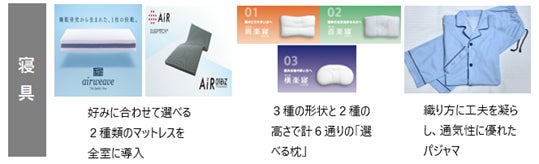 ・寝返りが打ちやすく、優れた体圧分散で身体に負担がかかりにくい「エアウィーヴ」社のマットレスを全室に導入