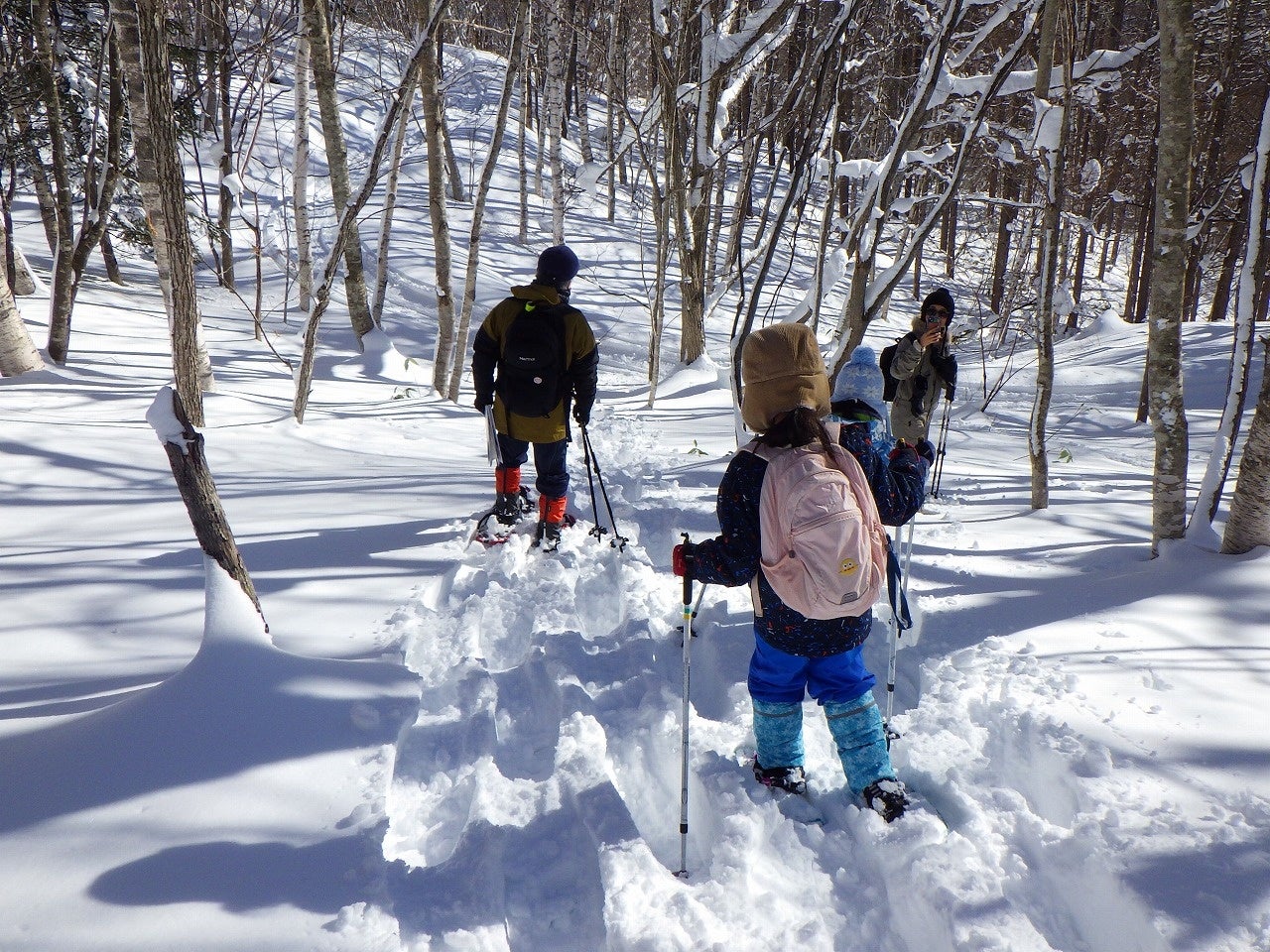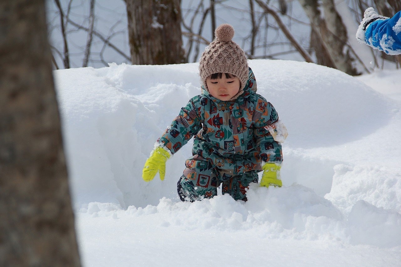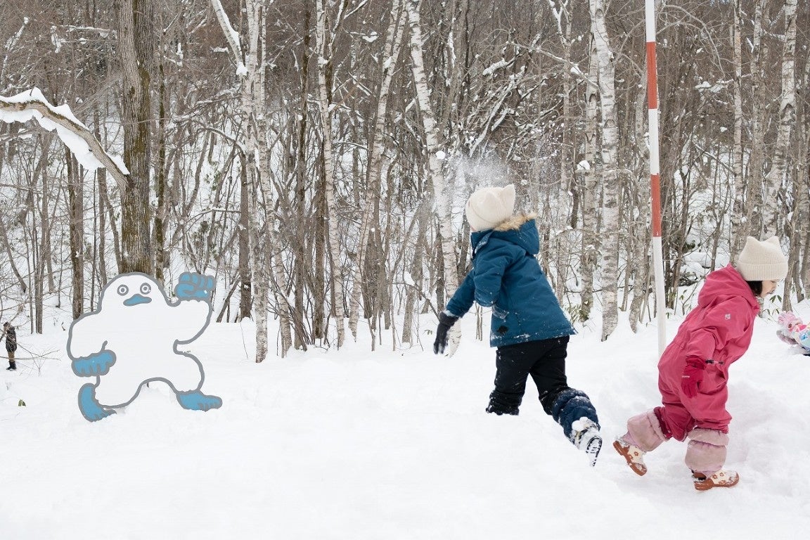 圧雪されていない森の中で、雪だるまを作りや斜面で尻すべりなど自由に遊ぶことができます。