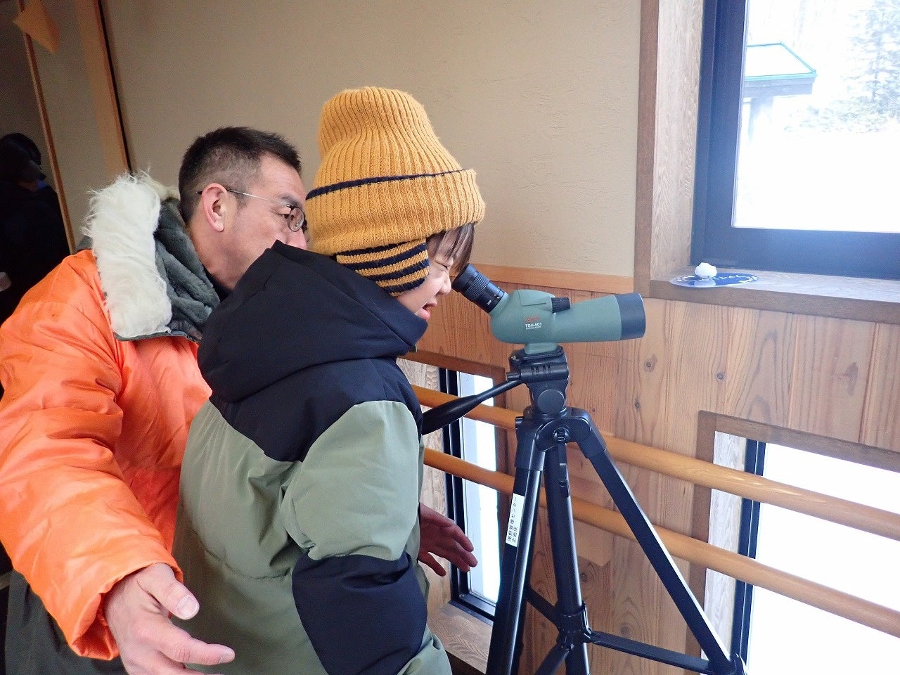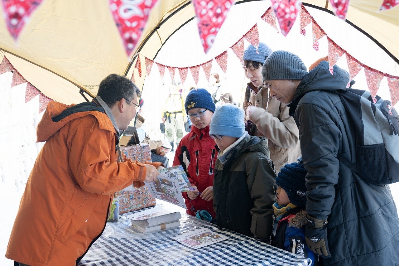 案内拠点の森の交流館では雪あそびグッズや専用の尻すべりマットのレンタル実施。