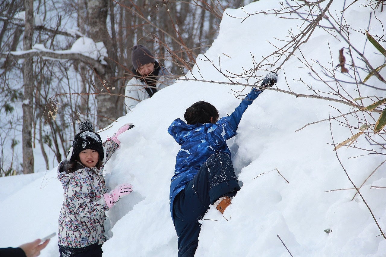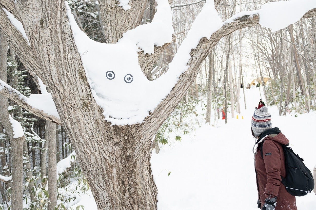 圧雪されていない森の中で、雪だるまを作りや斜面で尻すべりなど自由に遊ぶことができます。