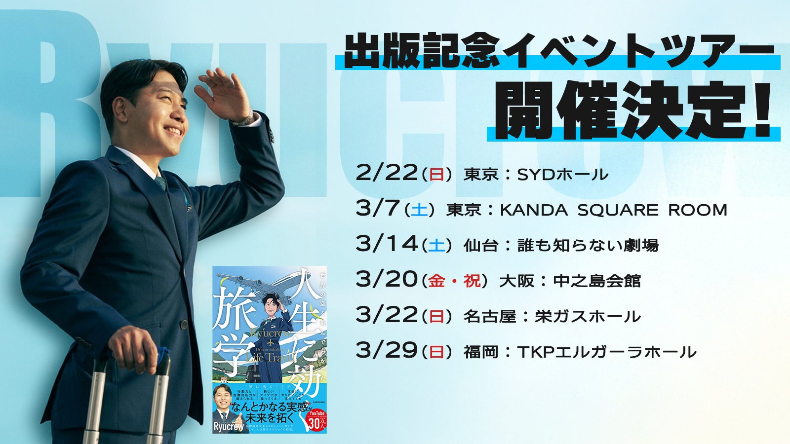 株式会社KADOKAWA(本社:東京都千代田区、取締役 代表執行役社長 CEO:夏野剛、以下KADOKAWA)は、2026年2月19日(木)に、『世界の空を飛んでわかった 人生に効く旅学』(著:Ryucrew)を発売いたします。