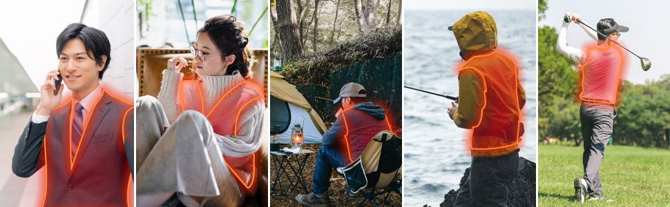 肌に触れる面は柔らかな裏起毛。外気温に合わせて最高55℃まで3段階で調整でき、氷点下の屋外から肌寒い室内まで、常に最適な温度をキープします。