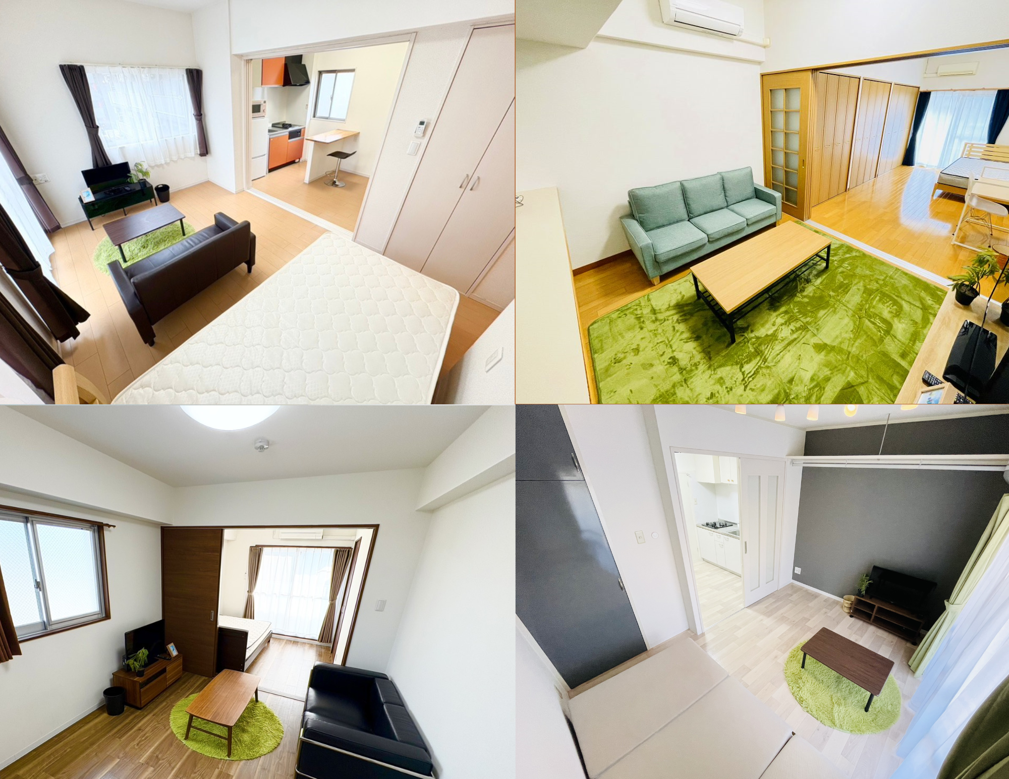 Sマンスリー清水町(左上) Sマンスリー千舟町【Cタイプ】(右上) Sマンスリーフジグラン松山前【Bタイプ】(右下) Sマンスリーいよ立花駅前【プレミアム】(左下)