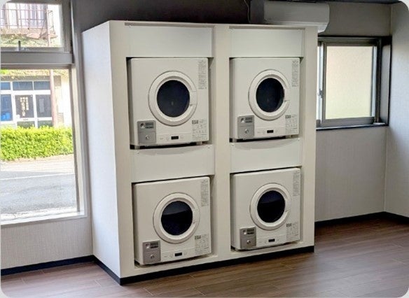 (1) 全客室に洗濯機を標準装備:客室で過ごしながら洗濯ができるので、お疲れになった体で共有ランドリーの空き状況を確認したり、終わるまで待機したりする必要はありません。また、室内には衣類乾燥機(除湿空気清浄機)も完備しています。