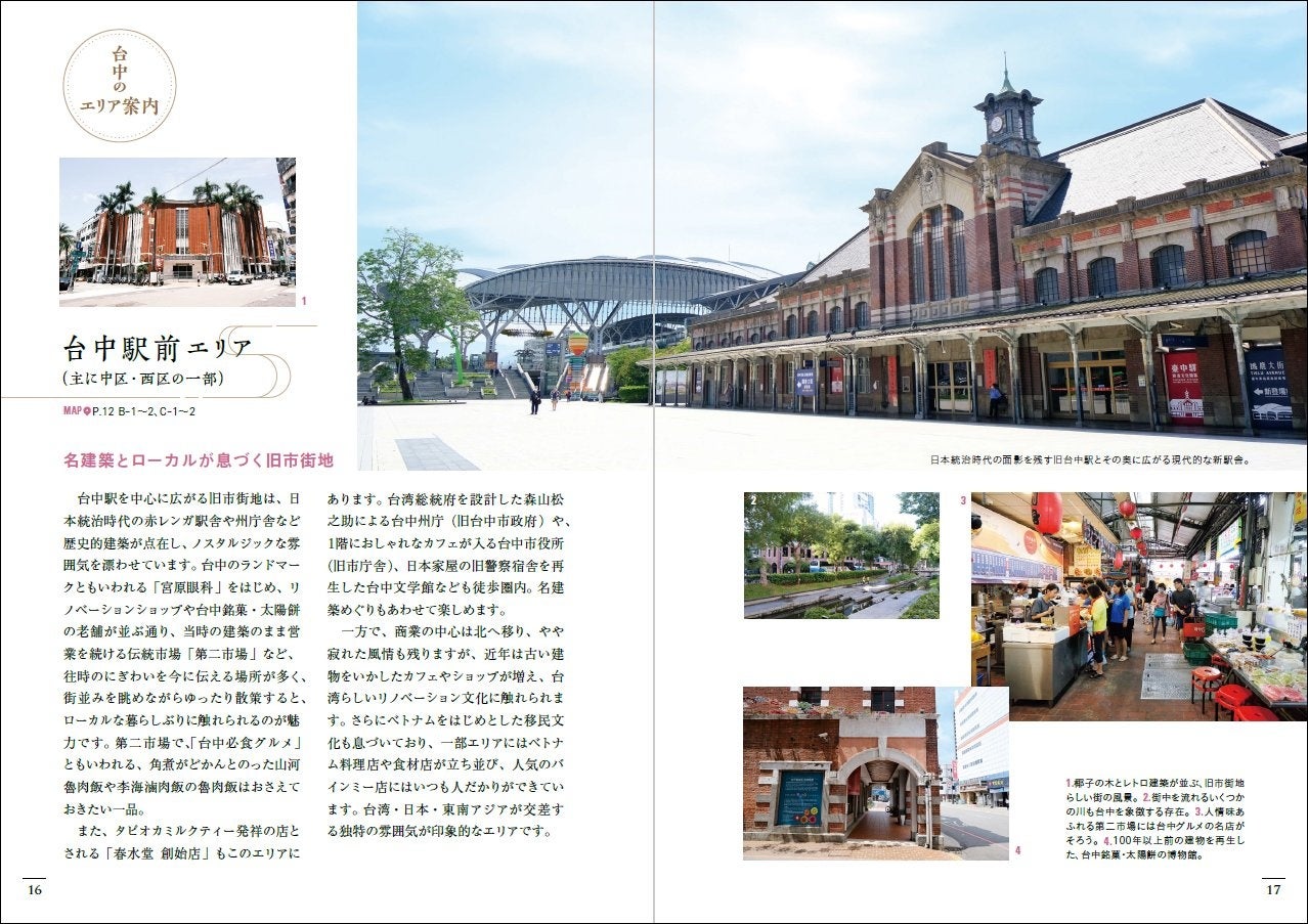 台中のエリア案内/台中を象徴する美しいスイーツ店、宮原眼科と系列店をめぐる/心ときめく朝ごはん・カフェ・スイーツ/タピオカミルクティー発祥の地、春水堂の本店へ/台中のローカルグルメを求めて/台中ならではのおみやげを持ち帰る/複合カルチャースポットへ/台中で出会える文化とアート/歴史ある名建築と憩いの場/台中郊外(彩虹眷村・高美湿地など) ほか