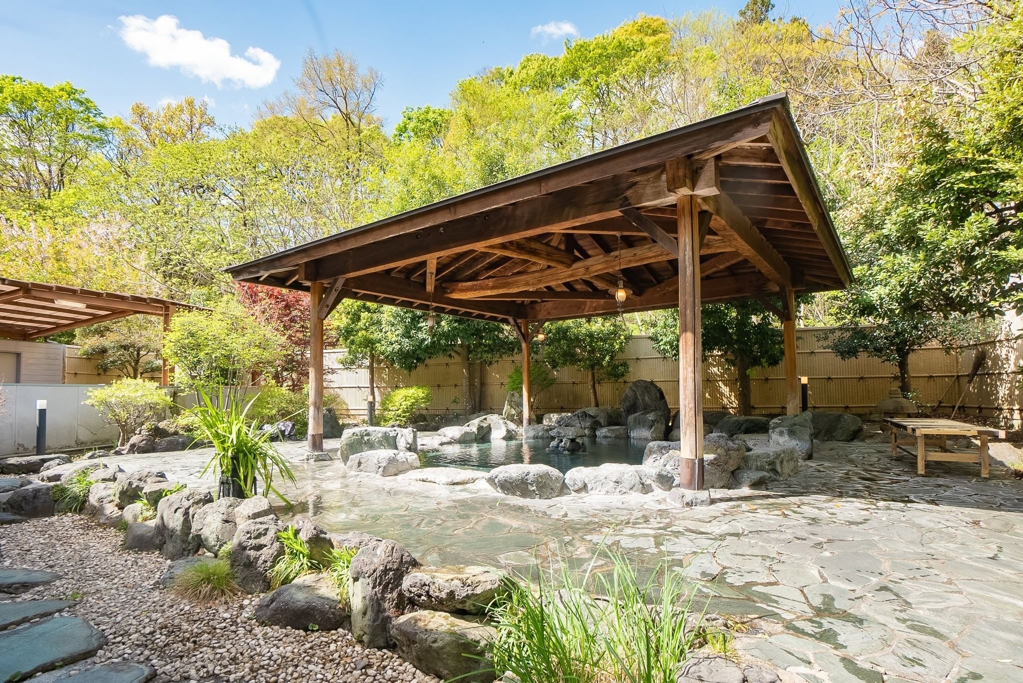 自然を満喫できる開放的な露天風呂と木の優しさを感じる檜風呂、自然の素朴な雰囲気を堪能できる岩風呂はpH11.1を誇るアルカリ性の泉質で美肌の湯とも呼ばれ関東有数の名湯として知られています。