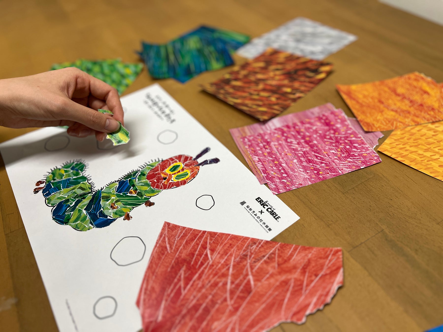 エリック・カール氏が好んだ手法『ティシュー』素材を使って、はらぺこあおむしや海の生きものを飾り付けるワークショップを実施いたします。エリック・カール氏のアートを体験しながら、自分だけのはらぺこあおむしや海の生きものをつくろう!