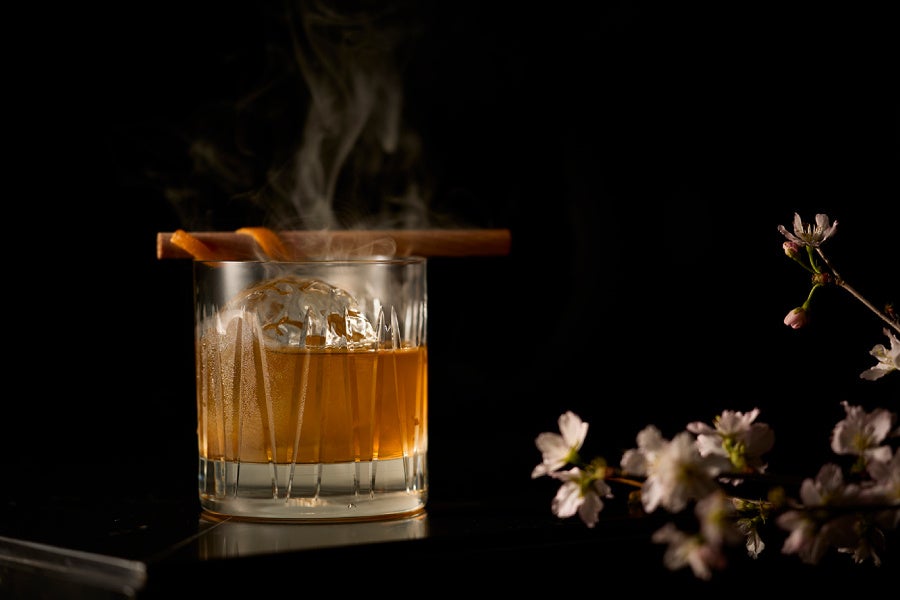 「葉桜」は、桜風味の紅茶をインフューズしたスピリッツにシェリーのハーブの香りを重ね、桜ウッドのスモークで“葉桜”の余韻を表現した大人のカクテル。春の移ろいを静かに感じられる、奥行きのある一杯です。