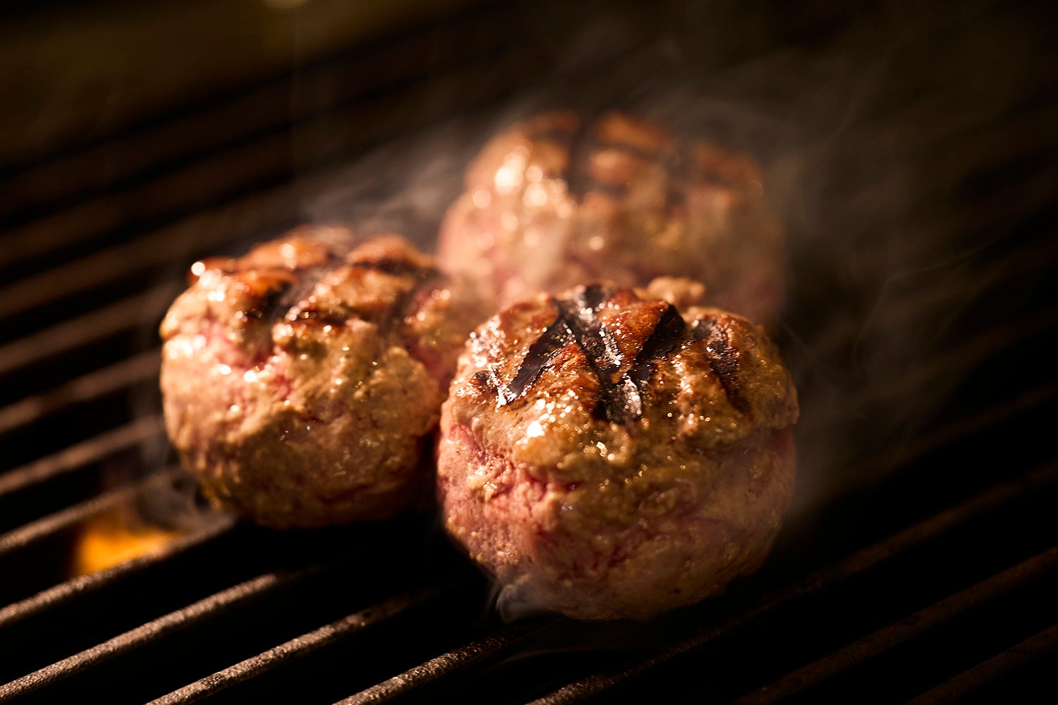 国産牛のハンバーグのグリルの火入れの様子
