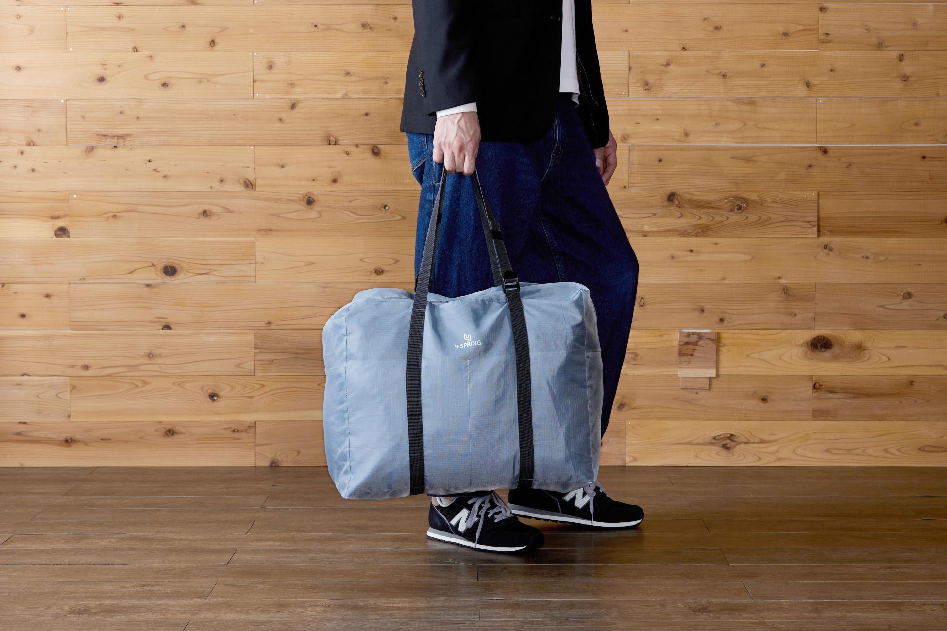 「行きは省スペース、帰りはしっかり収納」遠征先で増えたグッズやお土産も余裕で入る大容量ながら、収納時は手のひらサイズ(350mlの缶ほど)にまとまります。スーツケースの中でもかさばらず、荷物が増える旅のストレスを軽減。撥水性のある丈夫な生地で、安心して使えます。
