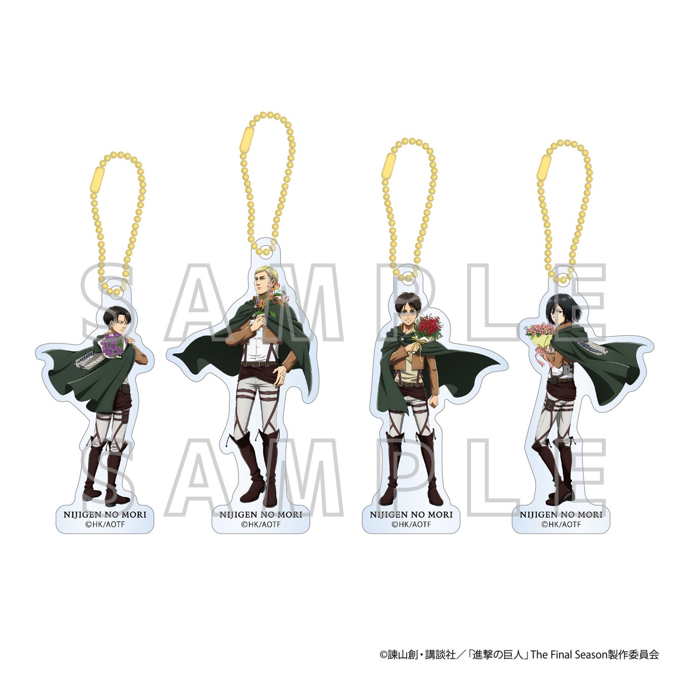 そしてこの度、イベント開始と同時に販売する第1弾オリジナルコラボグッズの発売が発表となりました。今回、オリジナル描き下ろしとなったエレンやミカサ、リヴァイ、エルヴィンたちが缶バッジやアクリルスタンドとなって登場。さらに、オリジナルイラストの巨人たちもハンカチやアクリルキーホルダー、エコバッグなどで登場します。その他、「リヴァイ兵士長のセリフメモ」や「アルミンの“一生かけても取りつくせないほどの”塩」など、ファン必見で小ネタ満載のオリジナルグッズ全36アイテムを販売いたします。