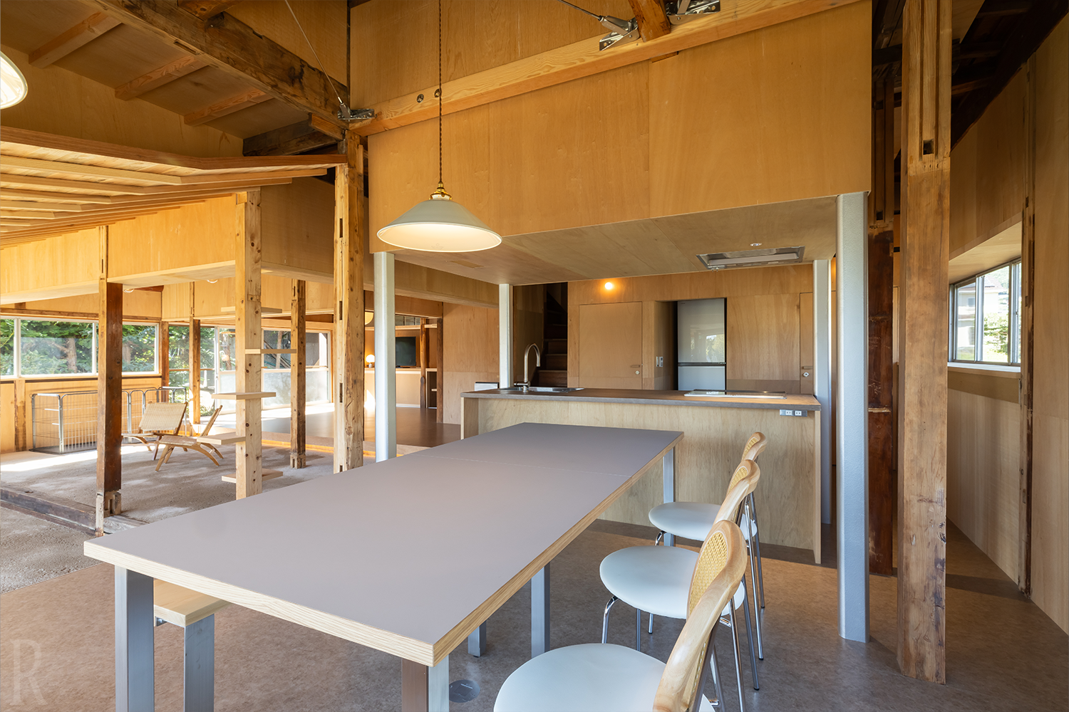 施設名に込められた「縁」の想いを体現するように、館内には壁を設けない開放的な土間空間を採用。古民家らしい趣を残した土間が、リビング・ダイニング・キッチンをゆるやかにつなぎ、家族それぞれが思い思いの場所で過ごしながらも、自然と気配や視線が交わる心地よい時間を生み出します。