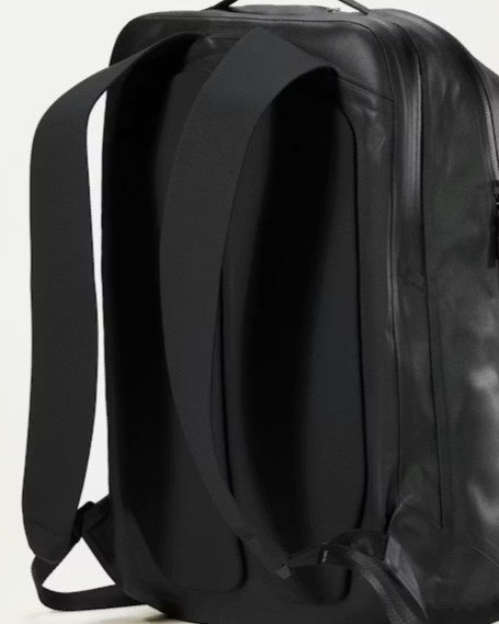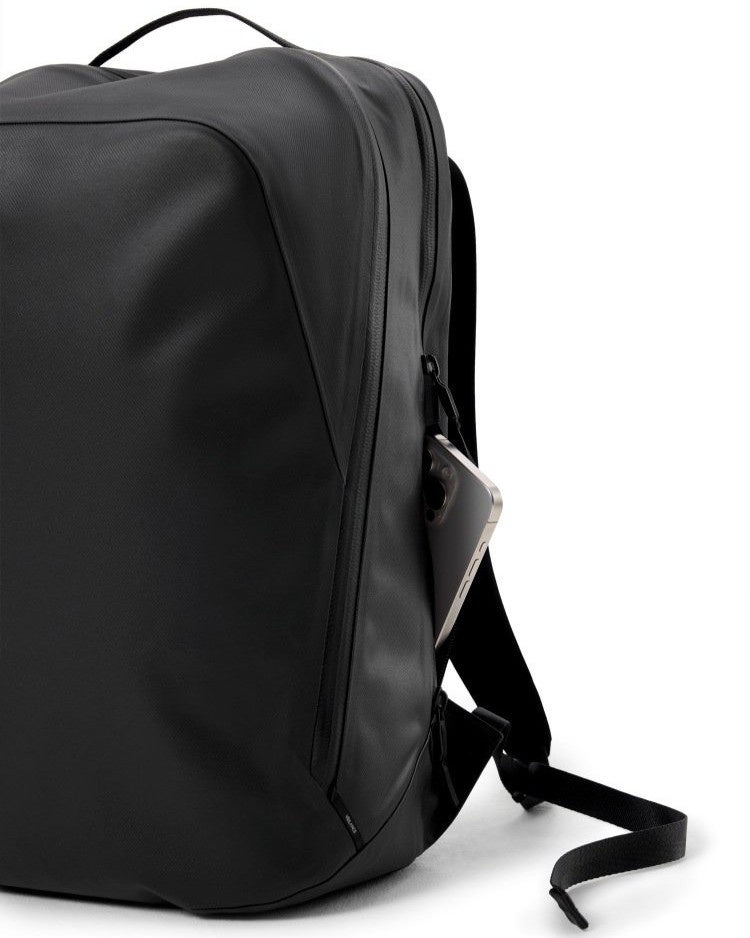 ショルダーストラップには、アークテリクスのハーネス構築システムの技術が応用されています。耐久性の高いナイロン製ウェビングコアを薄い二重織りの生地層で包み込むことで、強度と軽量性を両立しながら、肌や衣服に柔らかく接する快適な背負い心地を実現。日常的な使用においても安定したフィット感を提供します。