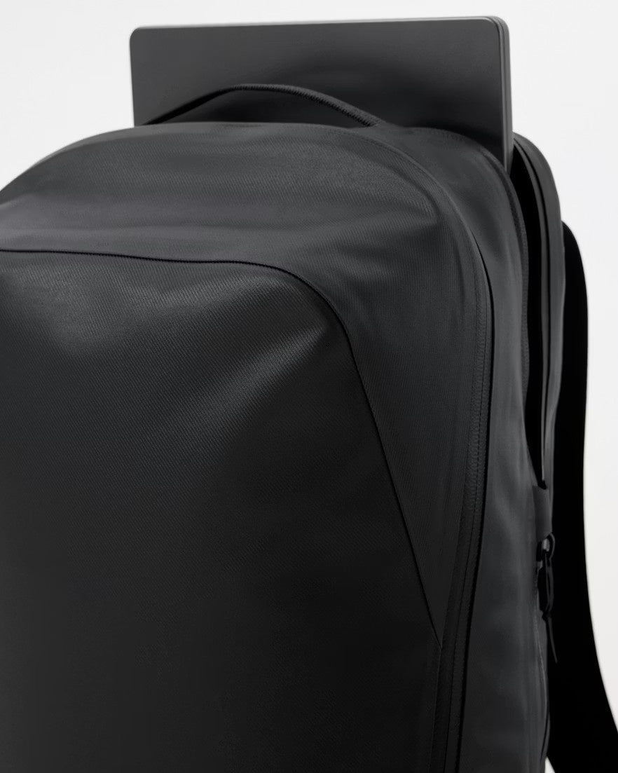 ショルダーストラップには、アークテリクスのハーネス構築システムの技術が応用されています。耐久性の高いナイロン製ウェビングコアを薄い二重織りの生地層で包み込むことで、強度と軽量性を両立しながら、肌や衣服に柔らかく接する快適な背負い心地を実現。日常的な使用においても安定したフィット感を提供します。