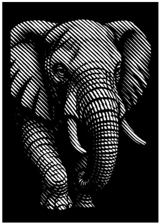 斜め線の細さや太さを調整して陰影を生み出す独自の技法「スラッシュ切り絵」が特徴で、1枚の紙を切り出すシンプルな表現ながら、写真のようにリアルで繊細な表情を描き出します。