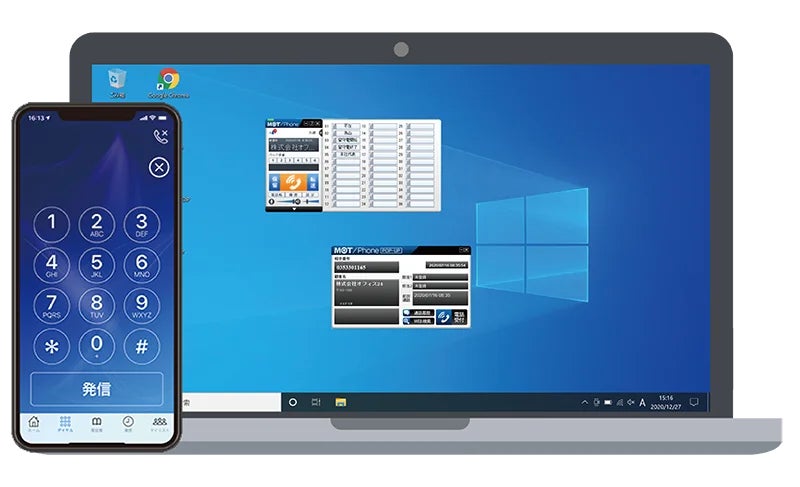 (※1) Webブラウザ(Google Chromeなど)からインターネット経由で利用できる電話サービスです。専用ソフトのインストールが不要で、パソコンとインターネット環境さえあれば、どこでもビジネスフォンの機能(発着信、保留、通話録音など)を利用できます。