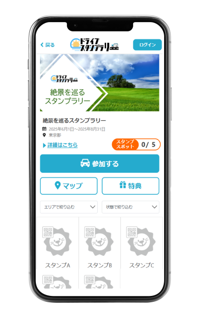 ドライブスタンプラリー参加に必要なのはスマートフォンだけ!インストールも不要!