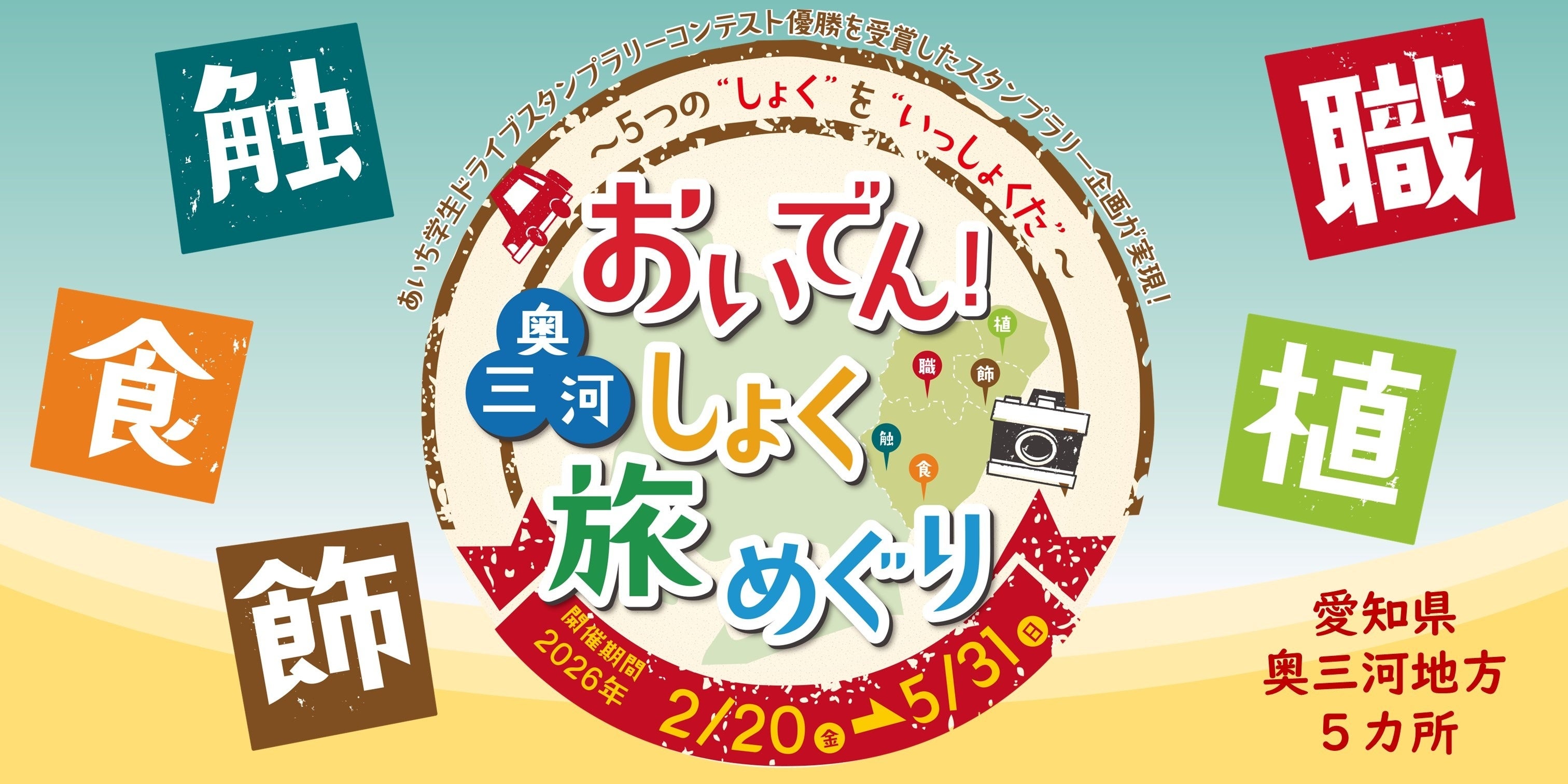 一般社団法人 日本自動車連盟(JAF)愛知支部(支部長:今枝 実)は、「あいち学生ドライブスタンプラリーコンテスト2025」において優勝したドライブスタンプラリー企画「おいでん!奥三河しょく旅めぐり ~5つの“しょく”を“いっしょくた”~」を2026年2月20日(金)から5月31日(日)まで開催します。