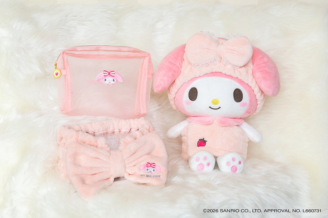 また、本プランにはオリジナルグッズ(ぬいぐるみ・ヘアターバン・ポーチ)をプラン料金に対し、お一人様1セットお土産としてご用意。ご宿泊の記念に東京ドームホテル限定デザインのマイメロディのグッズをお持ち帰りいただけます。