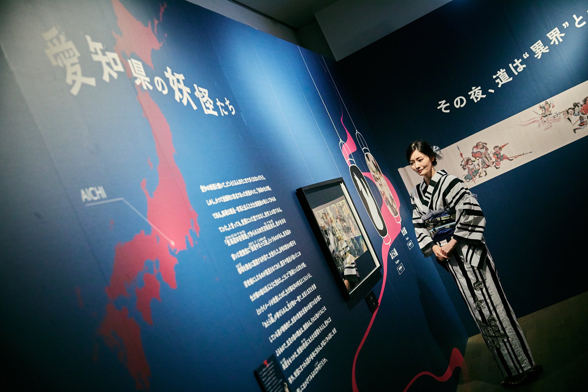 江戸・明治時代など様々な絵師によって描かれた「百鬼夜行絵巻」「百物語」「鬼」「天狗」「河童」「付喪神」などの日本が誇る妖怪美術に最先端の映像技術と立体造形で没入できる世界初のイマーシブ体感型デジタルアートミュージアムです。