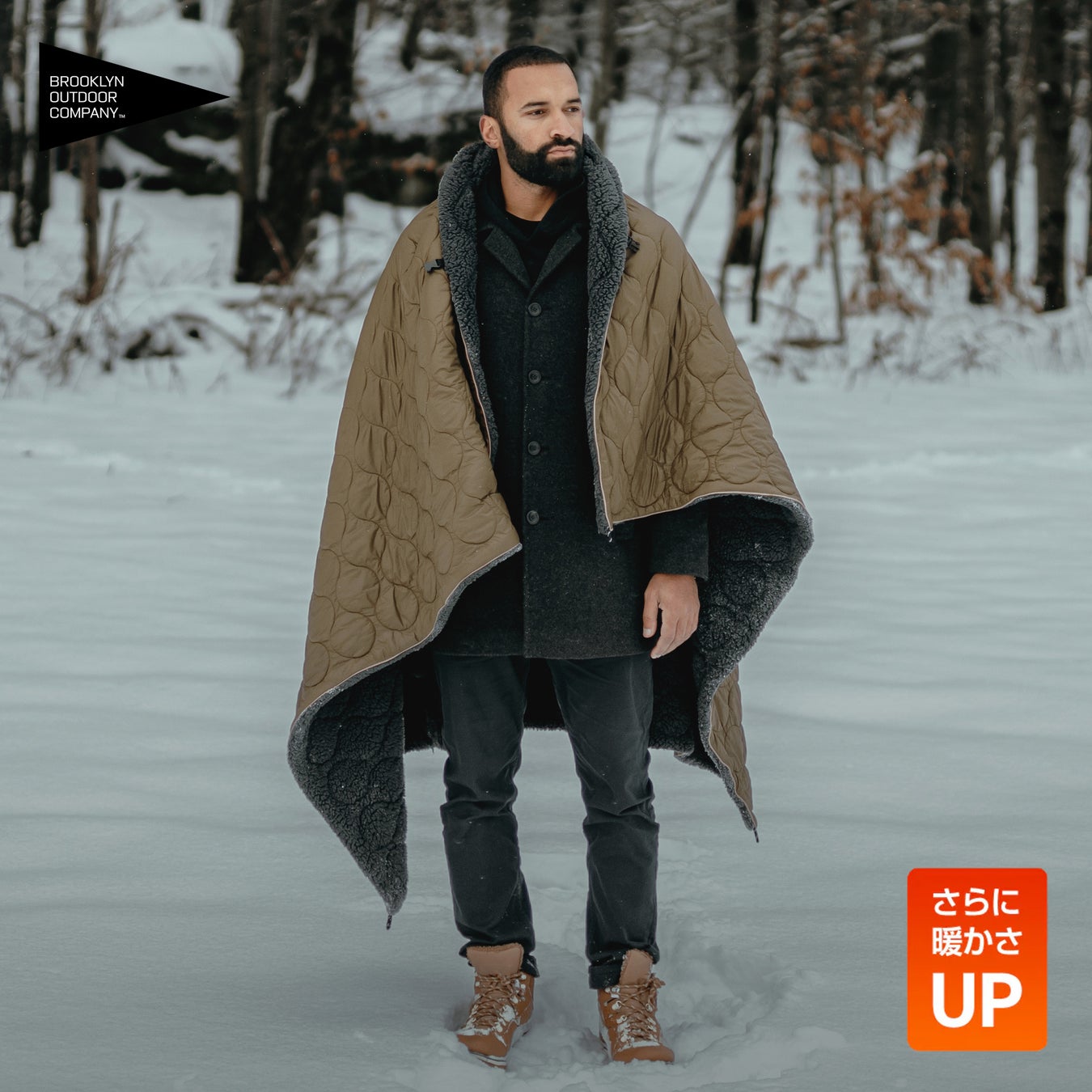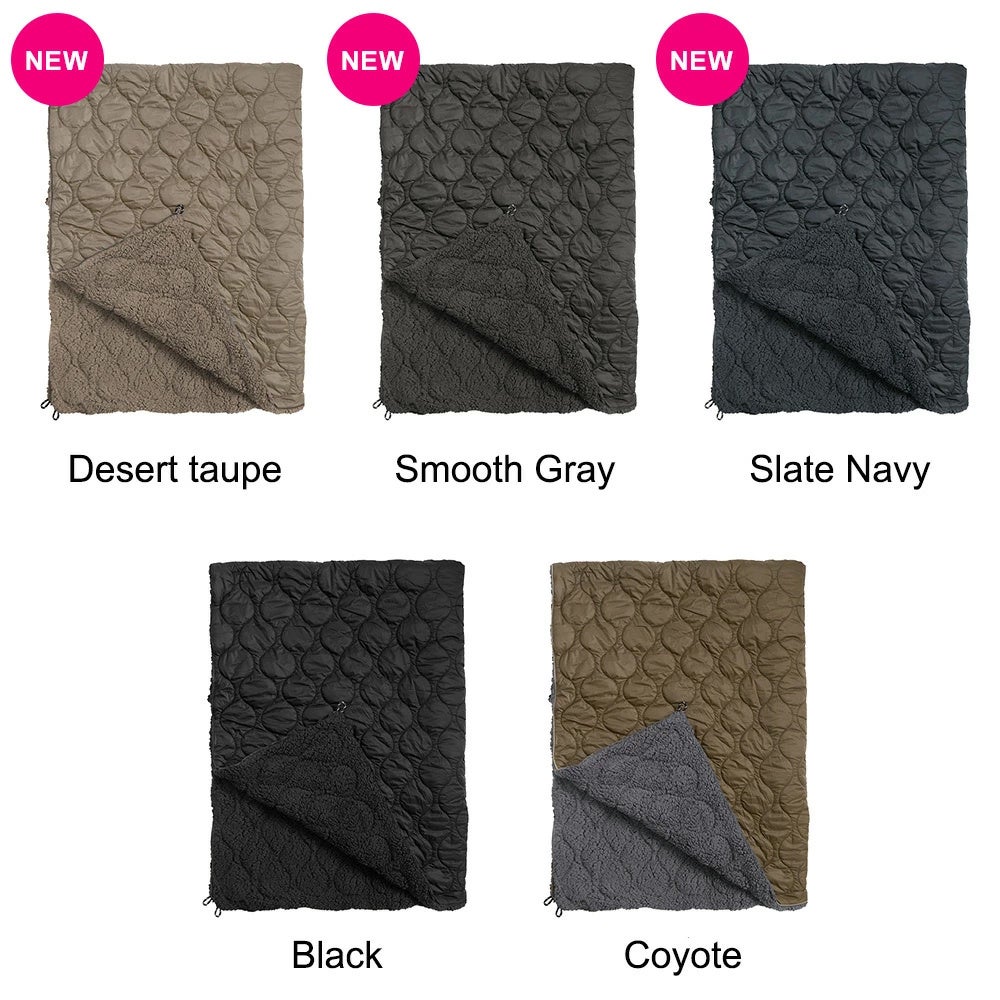 BROOKLYN OUTDOOR COMPANY は、以前より販売している人気商品「エコダウン サーマルシェルパブランケット」をリニューアルし、暖かさをさらに向上させました。あわせて、定番カラーのBlack、Coyoteに加え、新たに3色の新色「Desert Taupe」「Smooth Gray」「Slate Navy」を追加いたします。