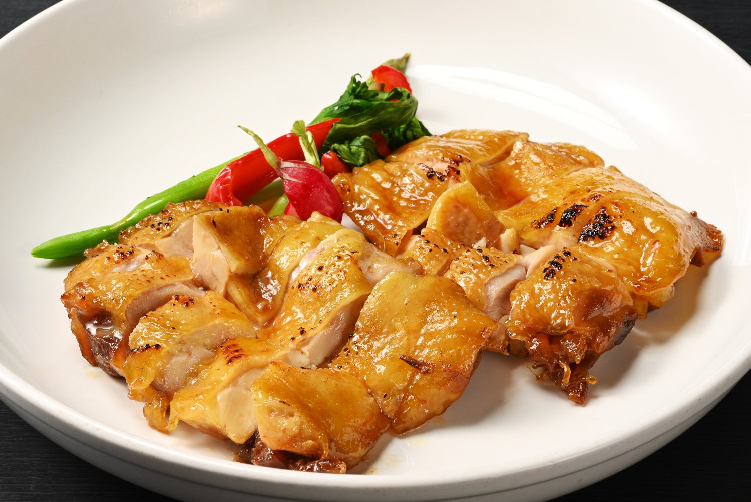 秋田の味噌でじっくりと焼き上げた「若鶏の秋田味噌叉焼」。秋田味噌の芳醇な香りとほのかな甘みが鶏肉にしっかりと染み込み、香ばしくふっくらとした仕上がりに。