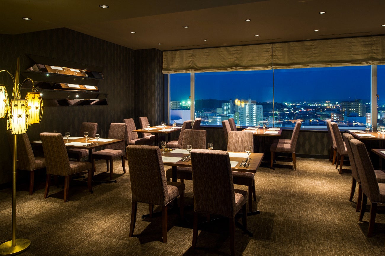 当ホテルの最上階、落ち着きのあるカウンター席でシェフが目の前で一品一品を丁寧に焼き上げる鉄板焼きレストランでは、芽吹きの季節の食材を臨場感たっぷりに焼き上げるディナーコースをご提供いたします。