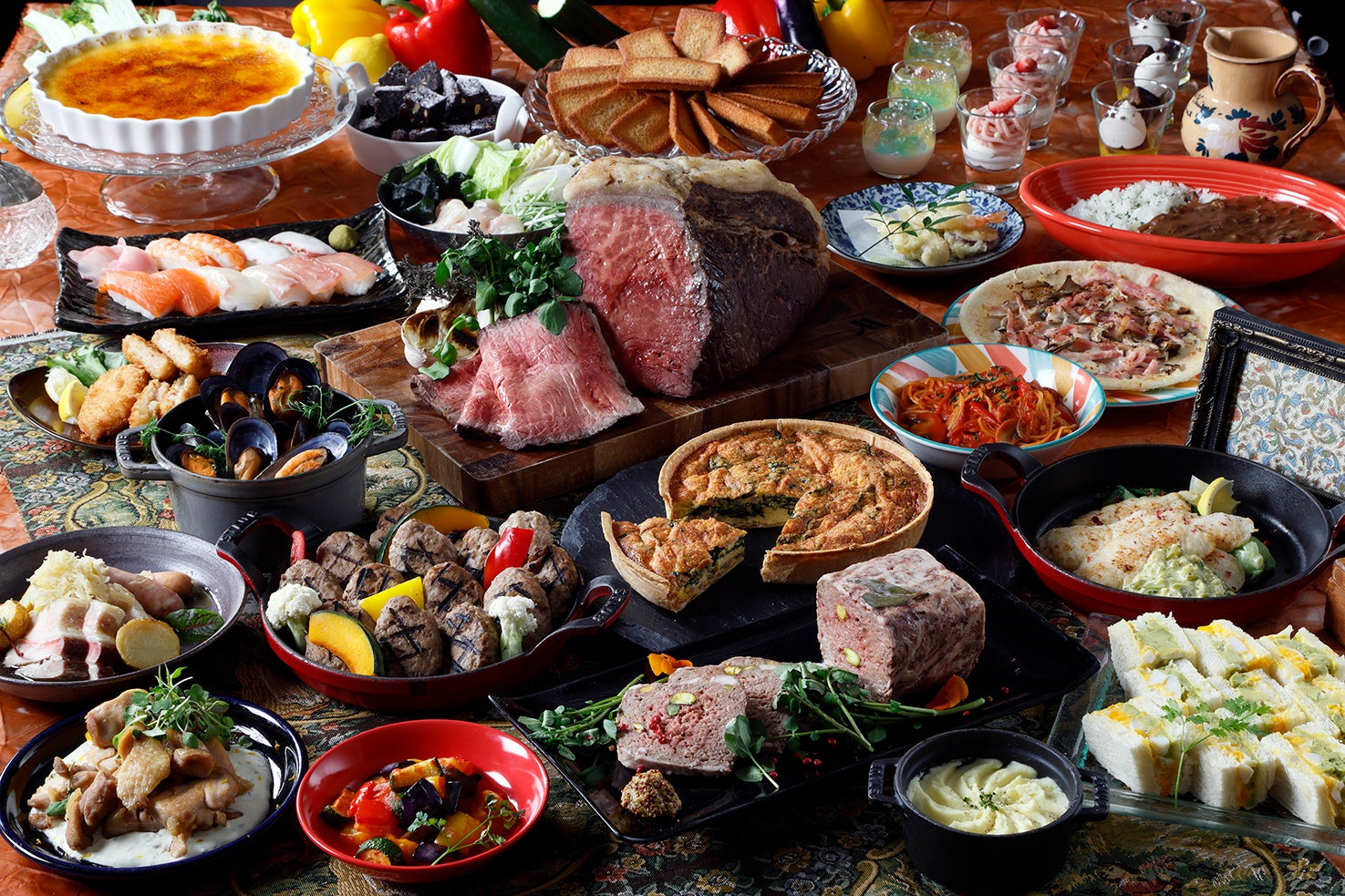 素材本来の持ち味を生かし、素朴さと奥深さが調和する伝統的なビストロメニューをご用意しました。肉の旨みを凝縮した「パテ・ド・カンパーニュ」や、白ワインのやさしい香りとともに海の恵みを味わう「ムール貝の白ワイン蒸し」など、クラシックな逸品がブッフェ台を彩ります。さらに、「桜香るモンブラン」をはじめとする創作性あふれるデザートもラインアップ。季節の趣を感じる華やかなスイーツも、心ゆくまでお楽しみいただけます。このほか、揚げたてでご提供する「天ぷら」や、しっとりと焼き上げた「国産牛ローストビーフ」などのレギュラーメニューも取り揃え、バラエティ豊かな味わいをお届けします。