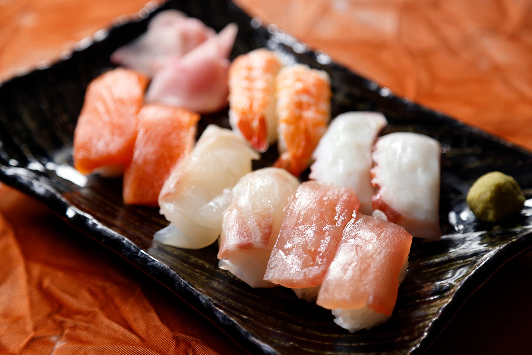 にぎり寿司(鮪・サーモン・鯛・海老・タコ)/ 鯛とわかめのしゃぶしゃぶ