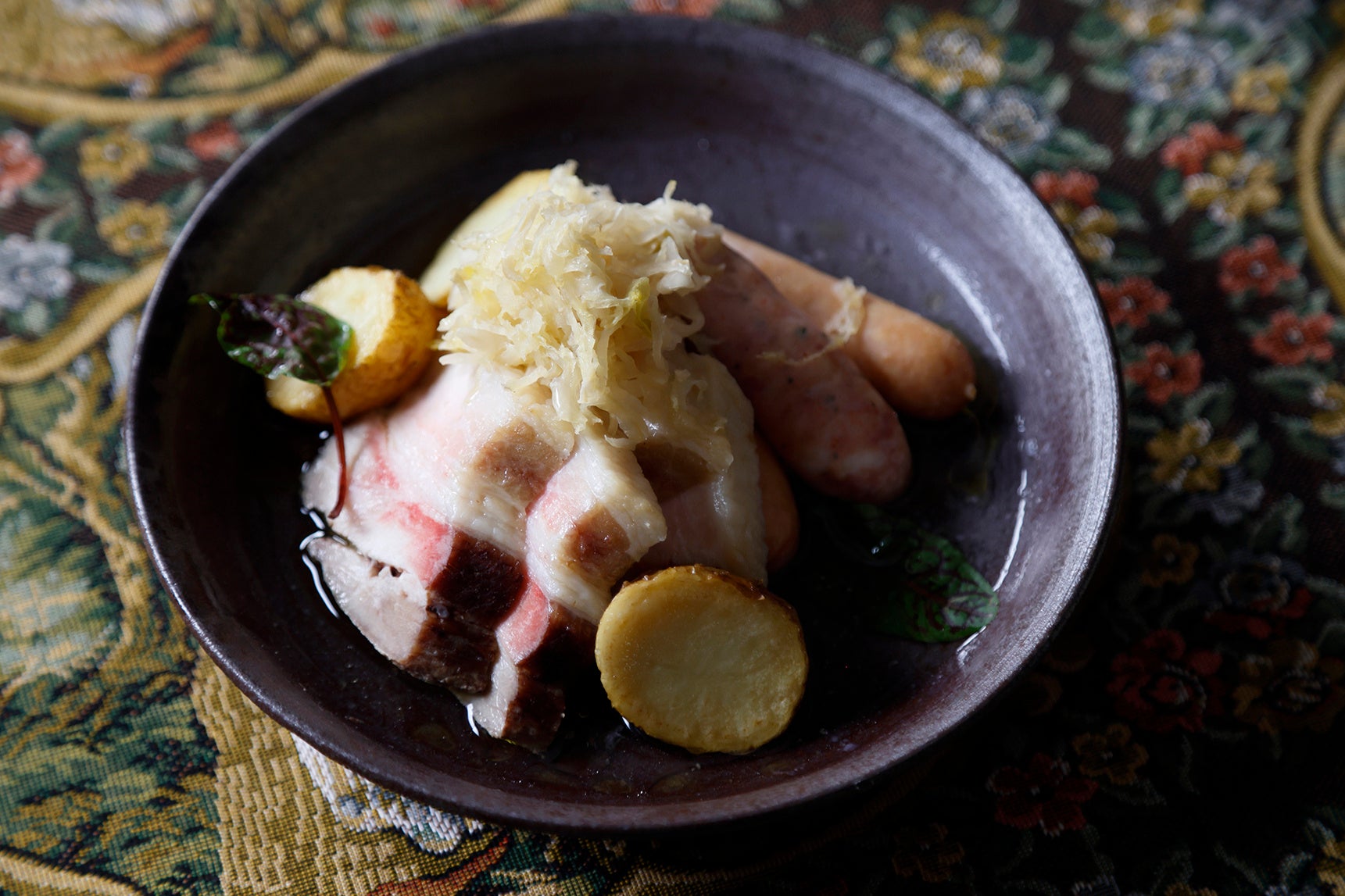 パテ・ド・カンパーニュ / キッシュ ロレーヌ / ラタトゥイユ / アボカドと卵のサンドイッチ / キャロットラぺ / ムール貝の白ワイン蒸し / シュークルート / 白身魚のムニエル 自家製タルタルソース / マッシュポテト / ハヤシライス / ハンバーグ(グリル)/ ハムステーキ マスタードソース
