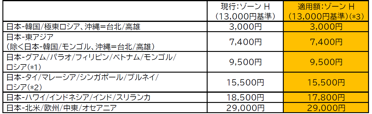 2) 2026年6月以降発券分の燃油特別付加運賃については、2026年4月にご案内予定です。